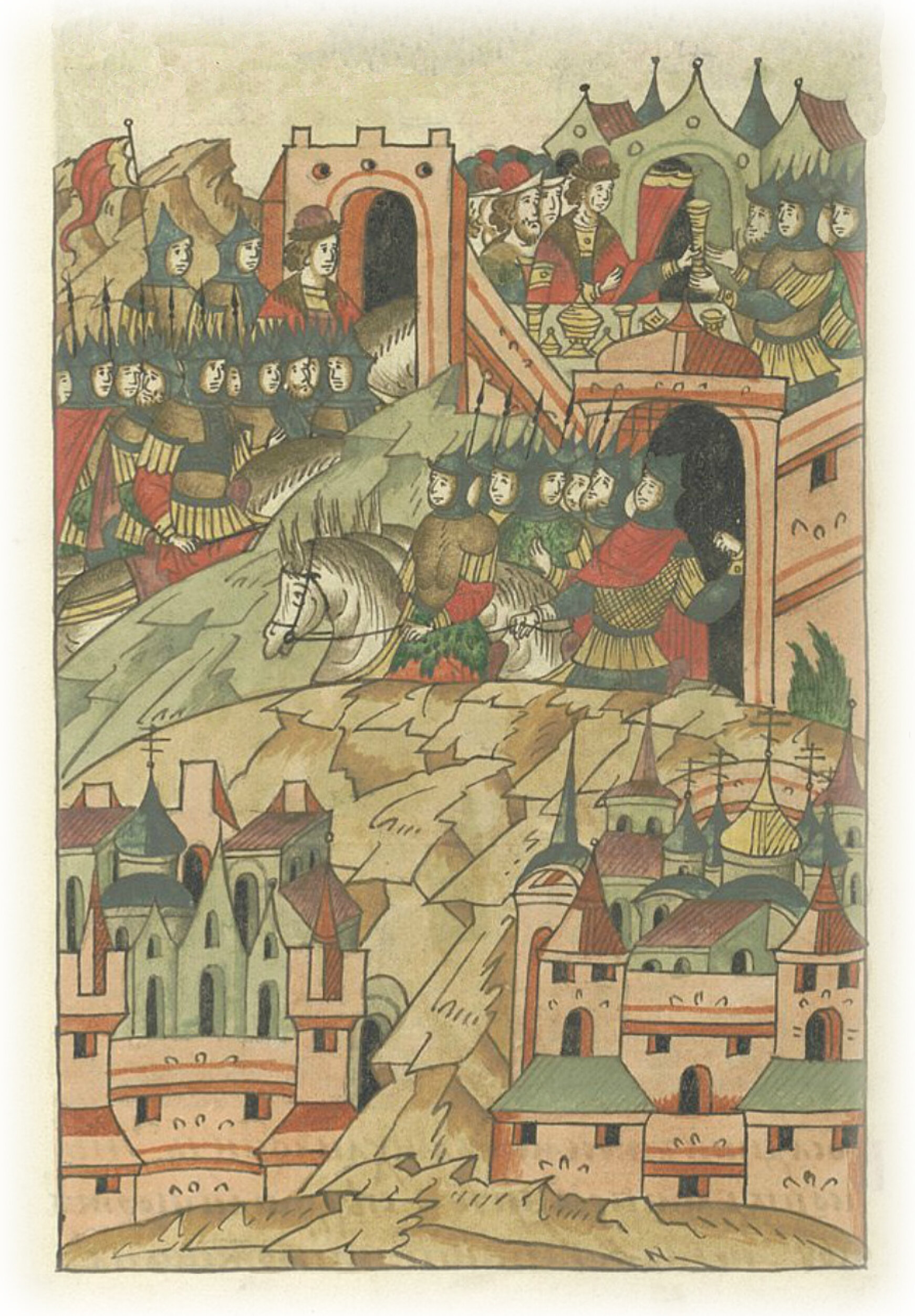 Ругодивские посадники Яким и Захар приезжают в Москву. Воеводы царя Ивана Васильевича Алексей Адашев и Иван Михайлов сообщают им, что государь пожалует их, если сдадут его воеводам помимо Ругодива Вышгород.