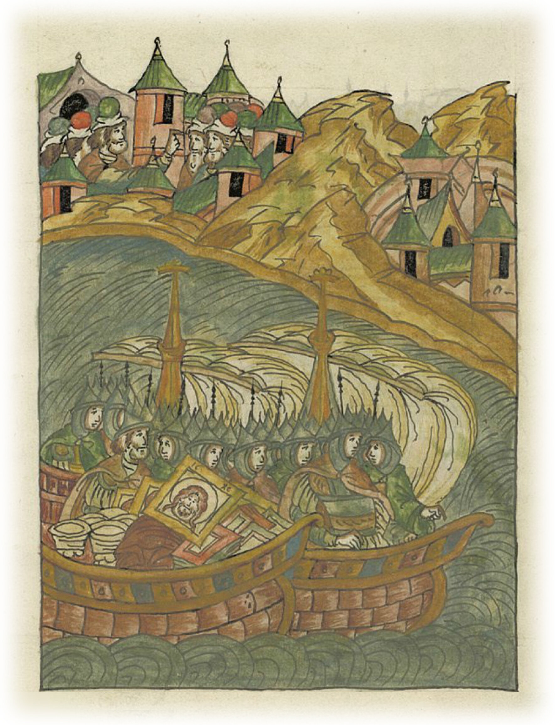 Латиняне же много имущества, книг, уставов и честных сосудов, и священных риз, и икон чудотворных, и Нерукотворный образ, и Ризу и Пояс Пречистой Богородицы, и мощи многих святых отнесли в Рим; в Царьграде же поставили своих епископов и пресвитеров, и все стало по римскому обычаю.
