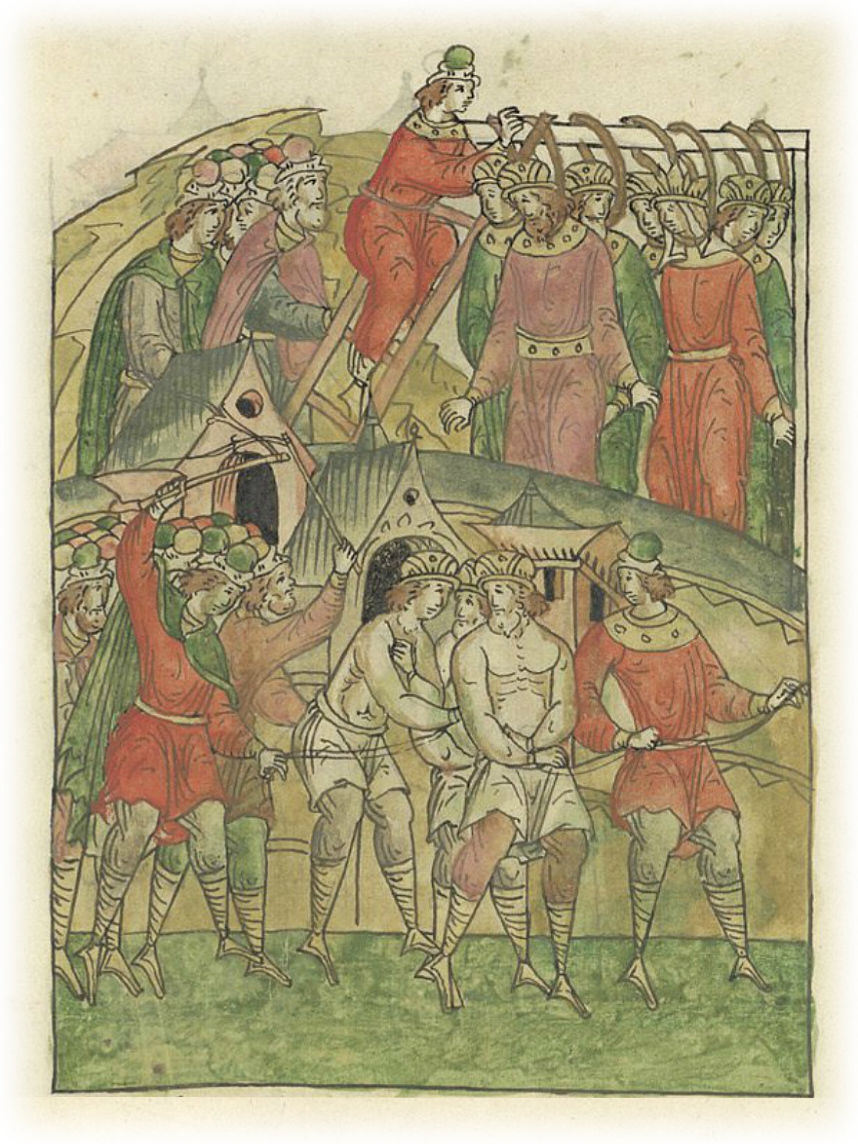Галичане избивают своего князя Романа Игоревича с двумя братьями и вешают их с женами и детьми.
