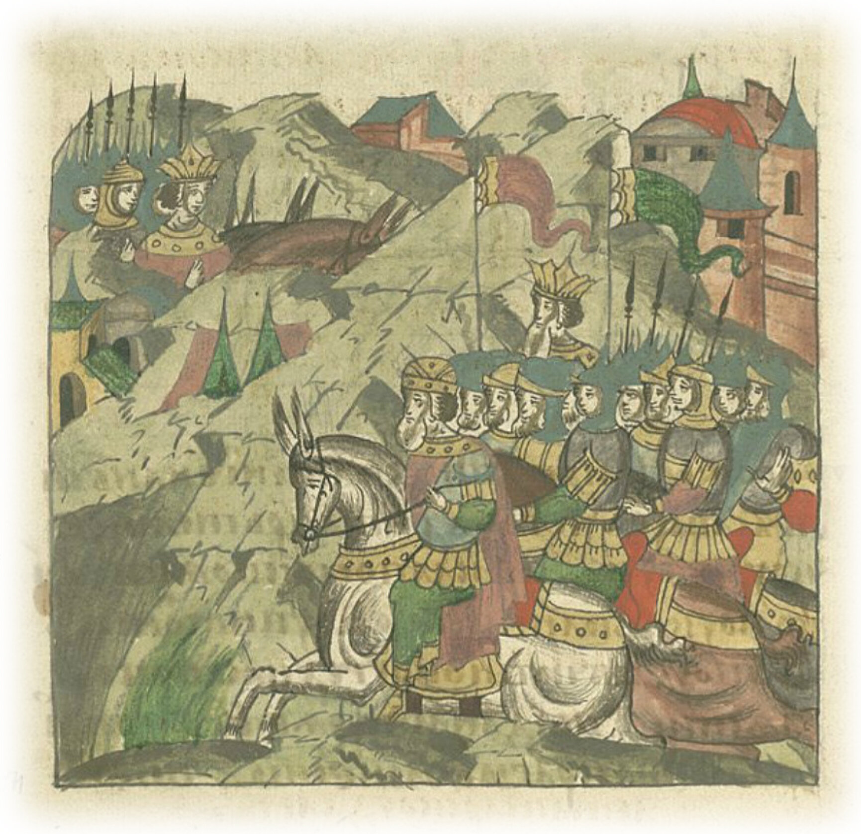 Литовский князь Витовт с царем Тохтамышем и огромным войском идет на Татарскую землю против царя Темир-Кутлуя.