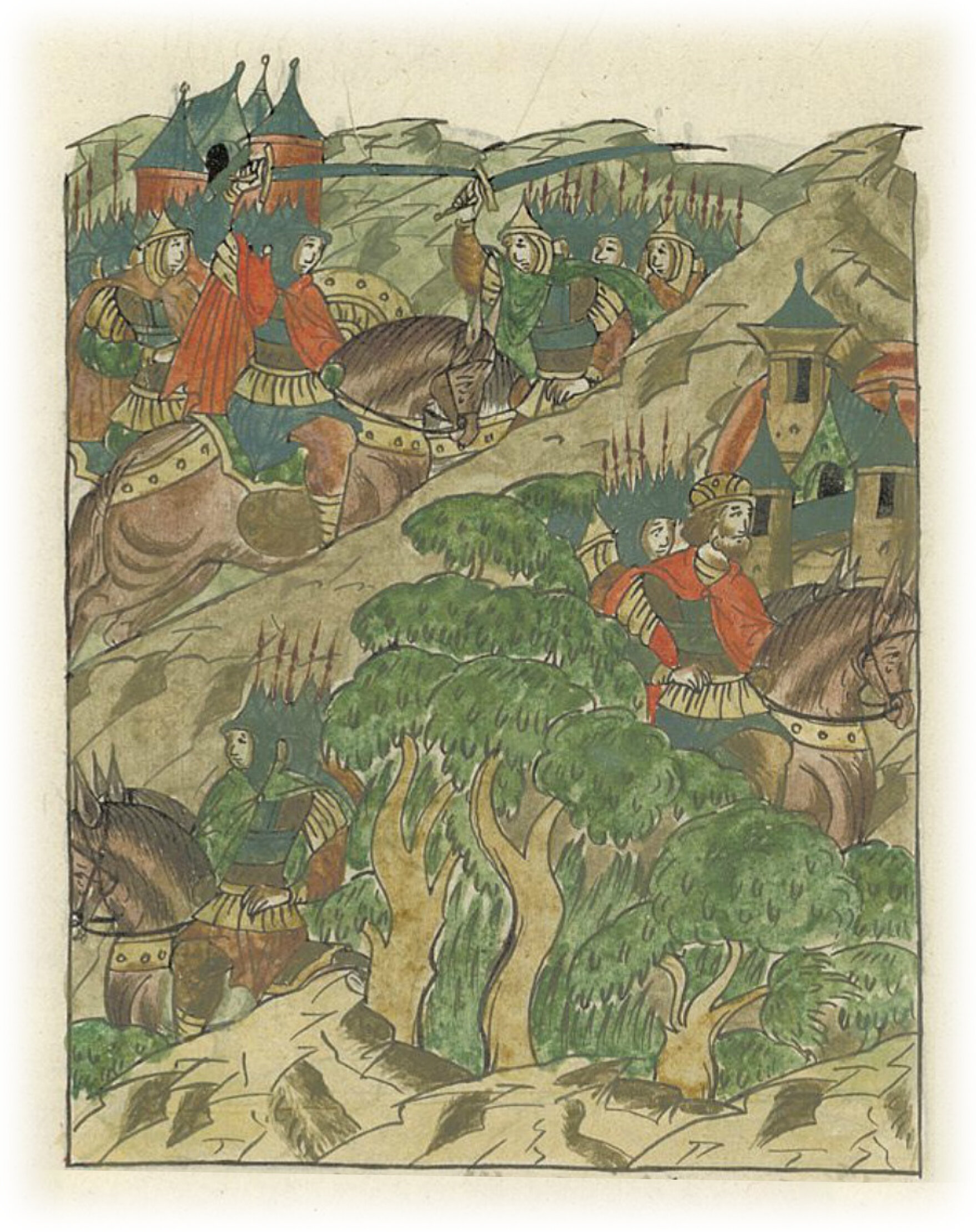 и, встретившись с ними, начали биться, не пропуская их к городу Владимиру; но Божьим промыслом они разминулись в лесах – князь Михалко из Москвы пошел к Владимиру, а князь Ярополк другим путем пошел к Москве.
