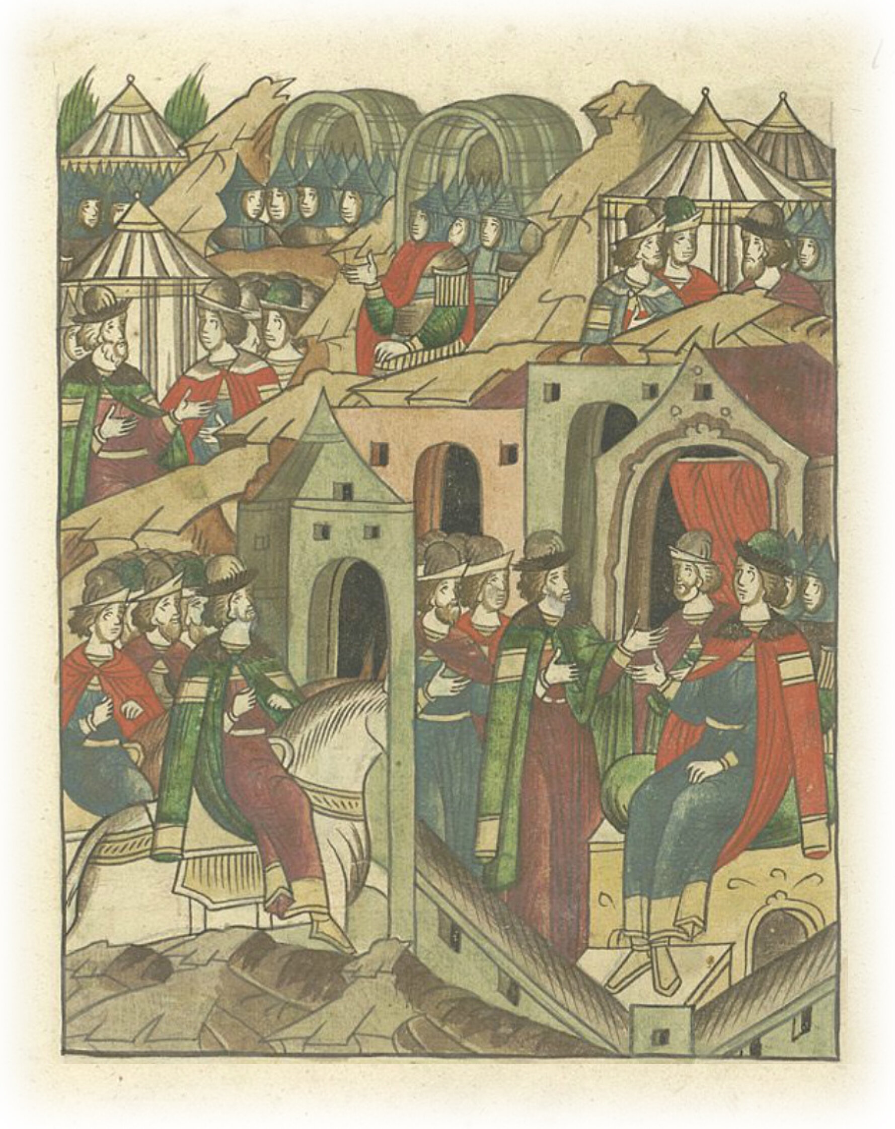 Князь Владимир Андреевич приходит к Волоку по призыву великого князя Дмитрия Ивановича против князя Михаила Александровича Тверского.
