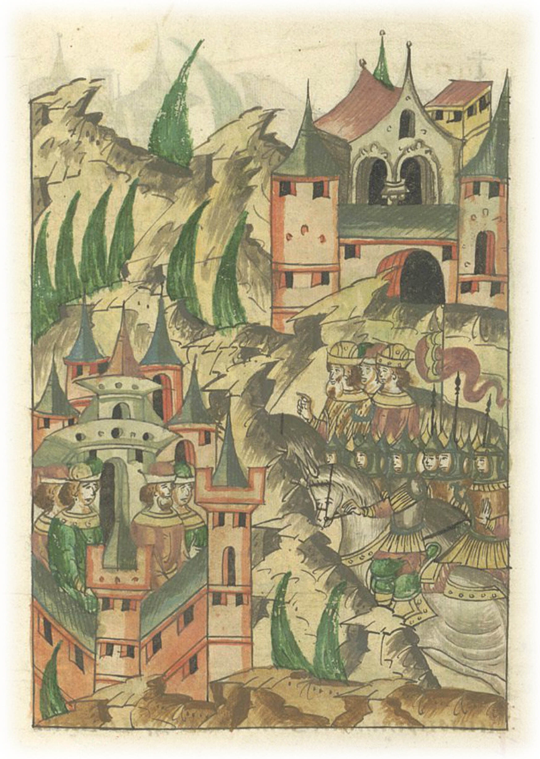 Языки говорят воеводам царя Ивана Васильевича, что магистр окопался большим рвом вокруг города Рындола, бьет из пушек и пищалей и приступает к Рындолу.