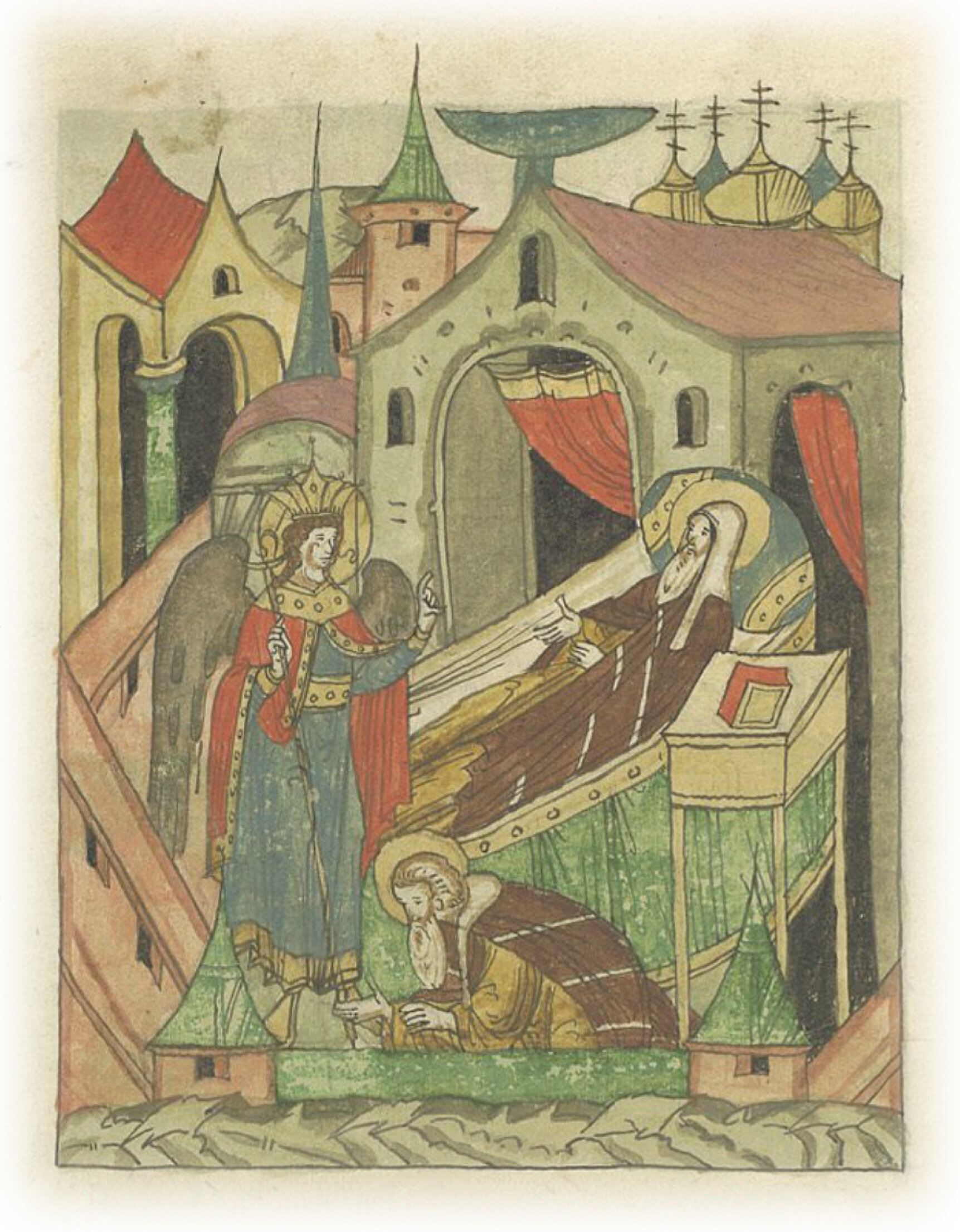 Повесть о Фотии, митрополите Киевском и всея Руси, который видел ангела Господня, показавшего ему конец его жизни. Было явление в городе Москве митрополиту Киевскому и всея Руси Фотию. Находился он утром в своей спальне и совершал свое обычное (молитвенное) правило в пятницу на Святой неделе, в 6938 (1430) году, на память преподобного Феодора Власяного. И когда лежал он в постели и почивал, то внезапно воссиял необыкновенный свет в его спальне, и вошел к нему некто, видом подобный человеку с северной стороны, благообразен и светел, с золотыми волосами и царским венцом на голове, и одежда его была украшена всяческими красотами, неподвластными человеческому пониманию, а в руке у него был золотой посох. И встал он, молча, перед святителем Фотием. Страшно стало Фотию, но через некоторое время, собравшись с силами, митрополит сказал ему: «Кто ты, о, человек, так удививший меня? Как дерзнул войти ко мне, если двери мои закрыты? Написано ведь: не входящий дверями – вор и разбойник». Тогда ответил ему пришедший: «Почему так думаешь обо мне; не вор я и не разбойник, не из земных людей; и ничто не может меня удержать – ни каменная стена, ни крепостные железные ворота, куда захочу войти, войду; я – Божий ангел, посланный к тебе от Господа Бога Саваофа Вседержителя. Повелел мне Господь Бог сказать тебе для укрепления твоей жизни; внимай себе и своему стаду, и дает тебе Христос Бог седмицу на рассмотрение своей жизни и на управление делами паствы твоей». Святитель же с большим страхом и трепетом выслушал ангела и со слезами пал к ногам его, но уже не увидел ангела Божья, поскольку тот стал невидим.