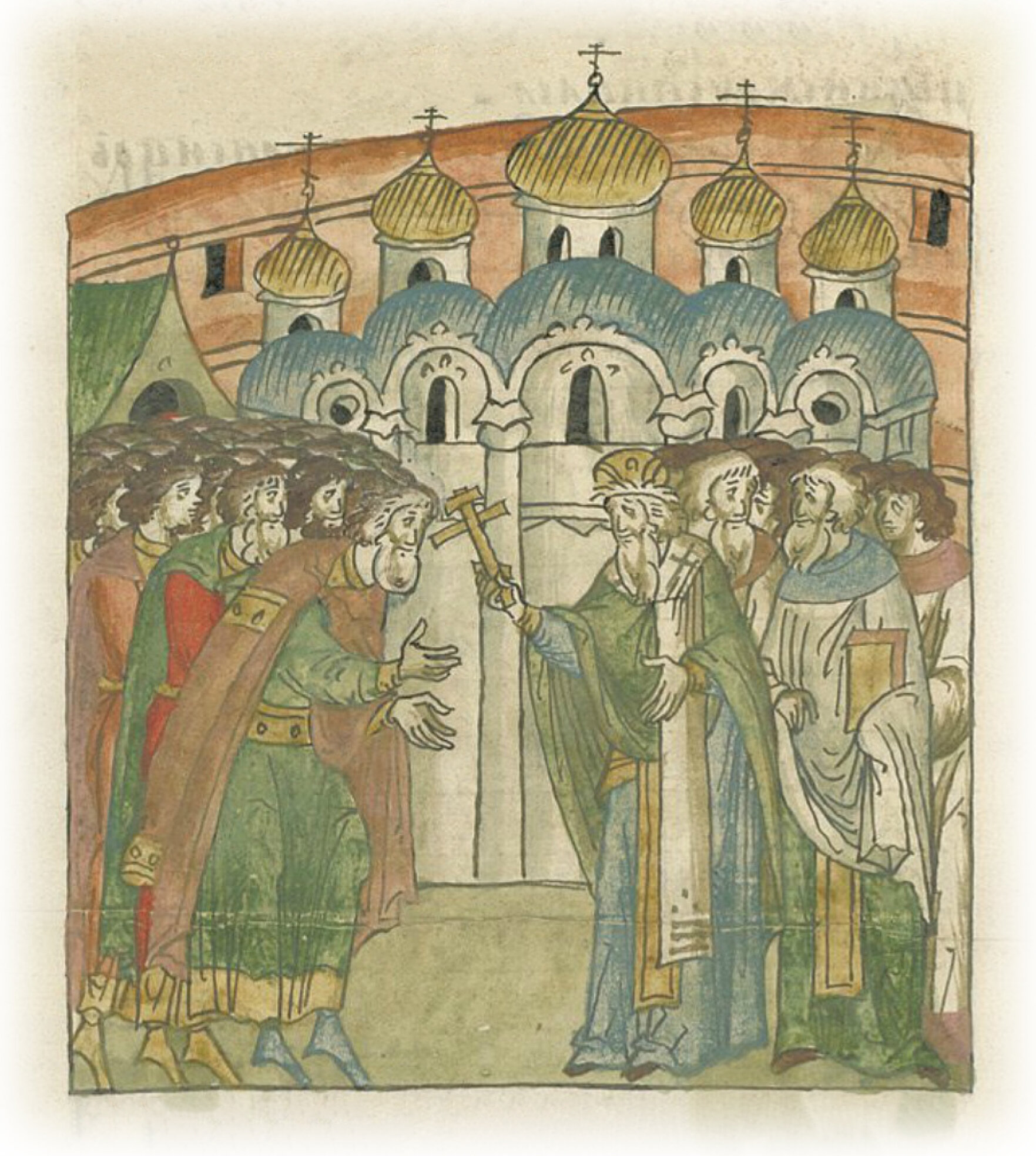 Смоленский епископ Варсонофий благословляет великого князя Василия Ивановича.