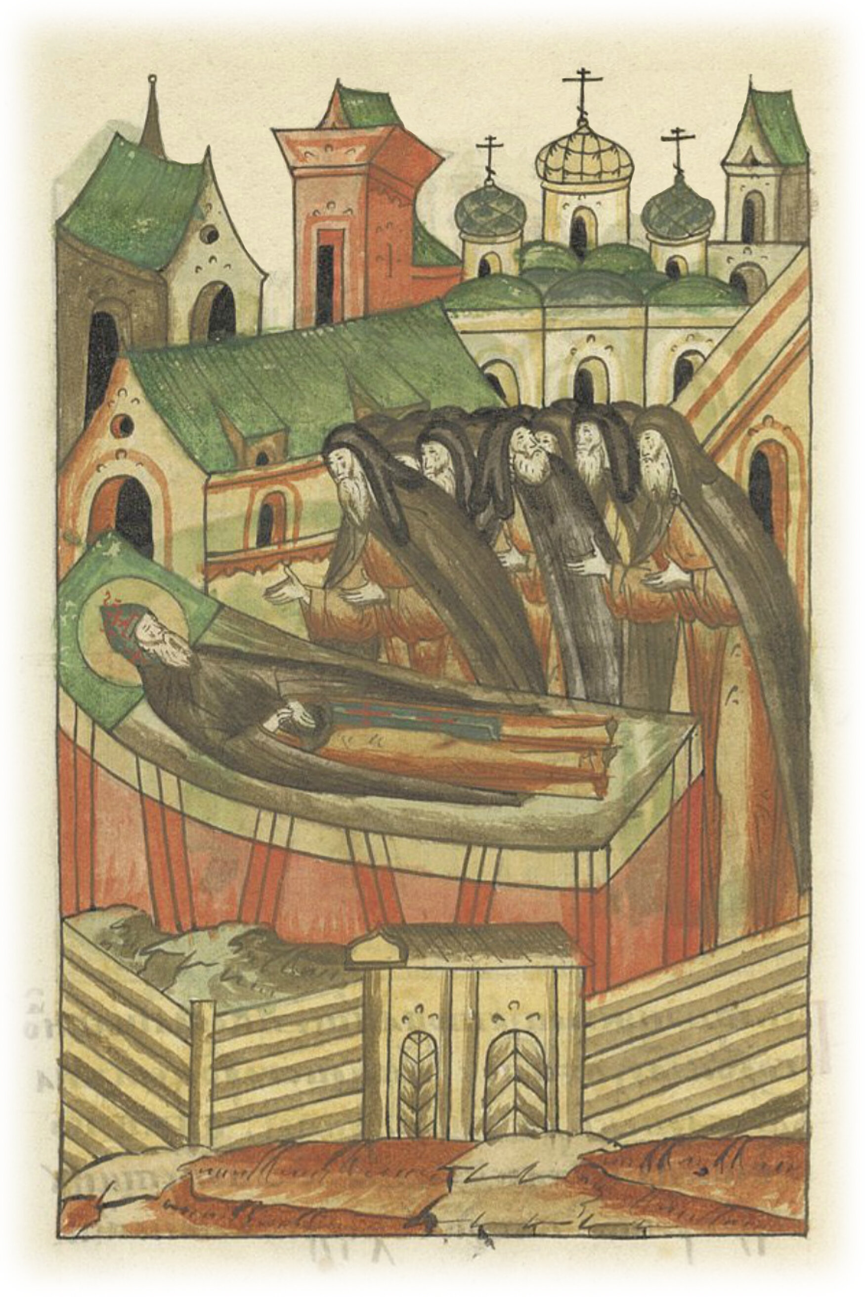 О преподобном Варлааме, Хутынском чудотворце. В том же году скончался преподобный и многодобродетельный великий чудотворец Варлаам, игумен Хутынский, в миру называемый Алекса Михайлович. Святую жизнь ведя, совершенно угодил Богу, к которому, радуясь, отошел в вечное блаженство. Его преславно прославил Господь предивной памятью и неисчислимыми чудесами, о нем достаточно рассказано в торжественном чтении.
