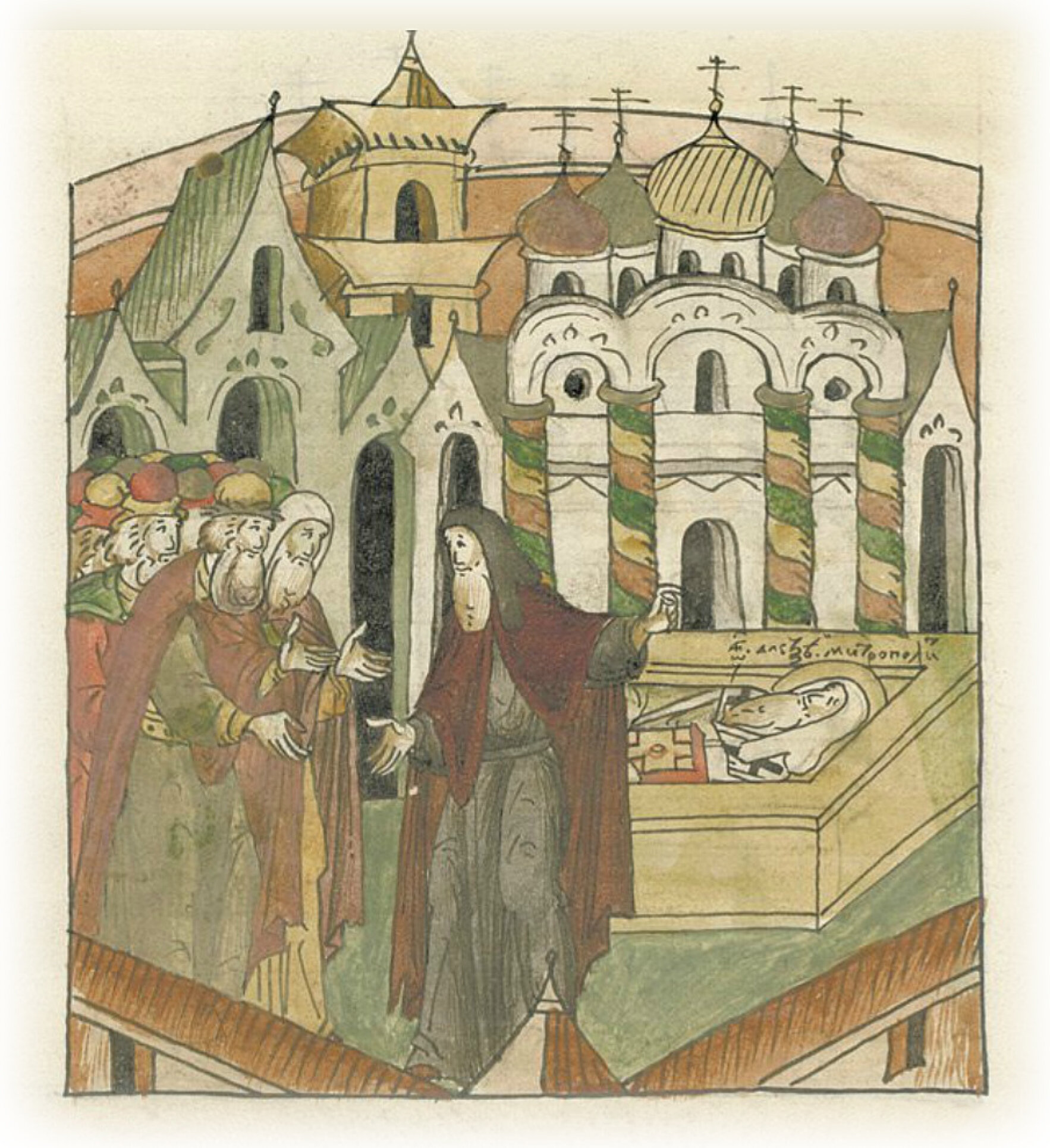 Архимандрит Иона объявъляет о чудесах у гроба святителя Алексия митрополиту Варлааму и великому государю Василию Ивановичу.