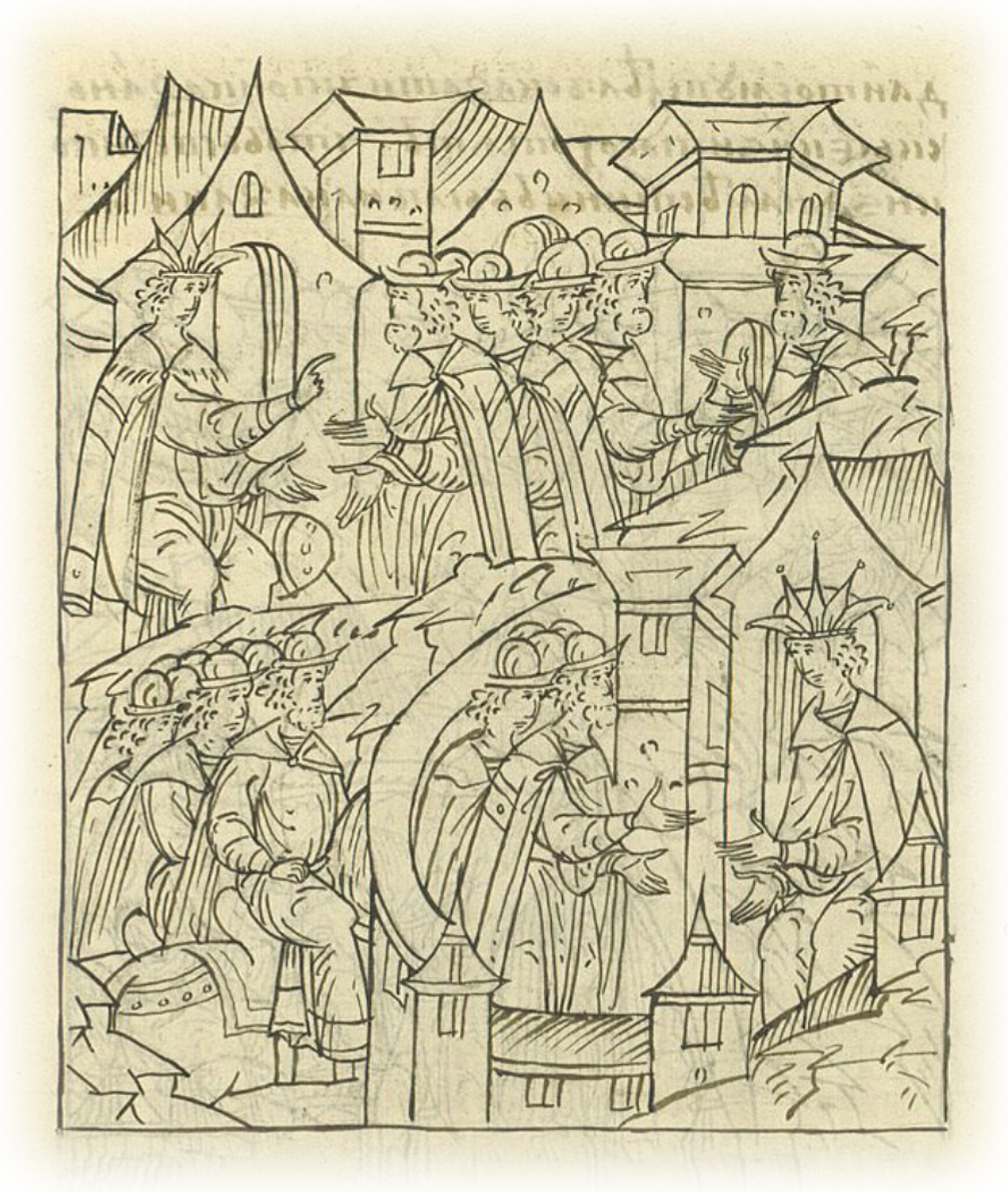 Ругодивские посадники Яким и Захар приезжают в Москву. Воеводы царя Ивана Васильевича Алексей Адашев и Иван Михайлов сообщают им, что государь пожалует их, если сдадут его воеводам помимо Ругодива Вышгород.