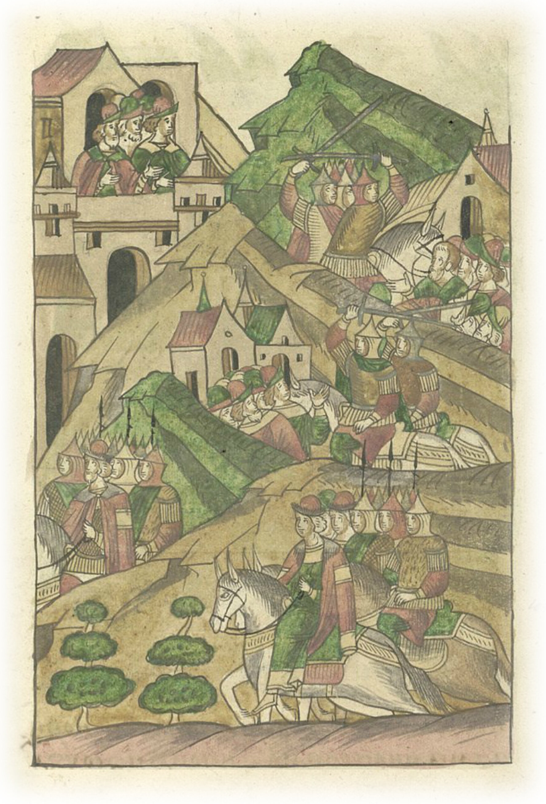 Языки говорят воеводам царя Ивана Васильевича, что магистр окопался большим рвом вокруг города Рындола, бьет из пушек и пищалей и приступает к Рындолу.