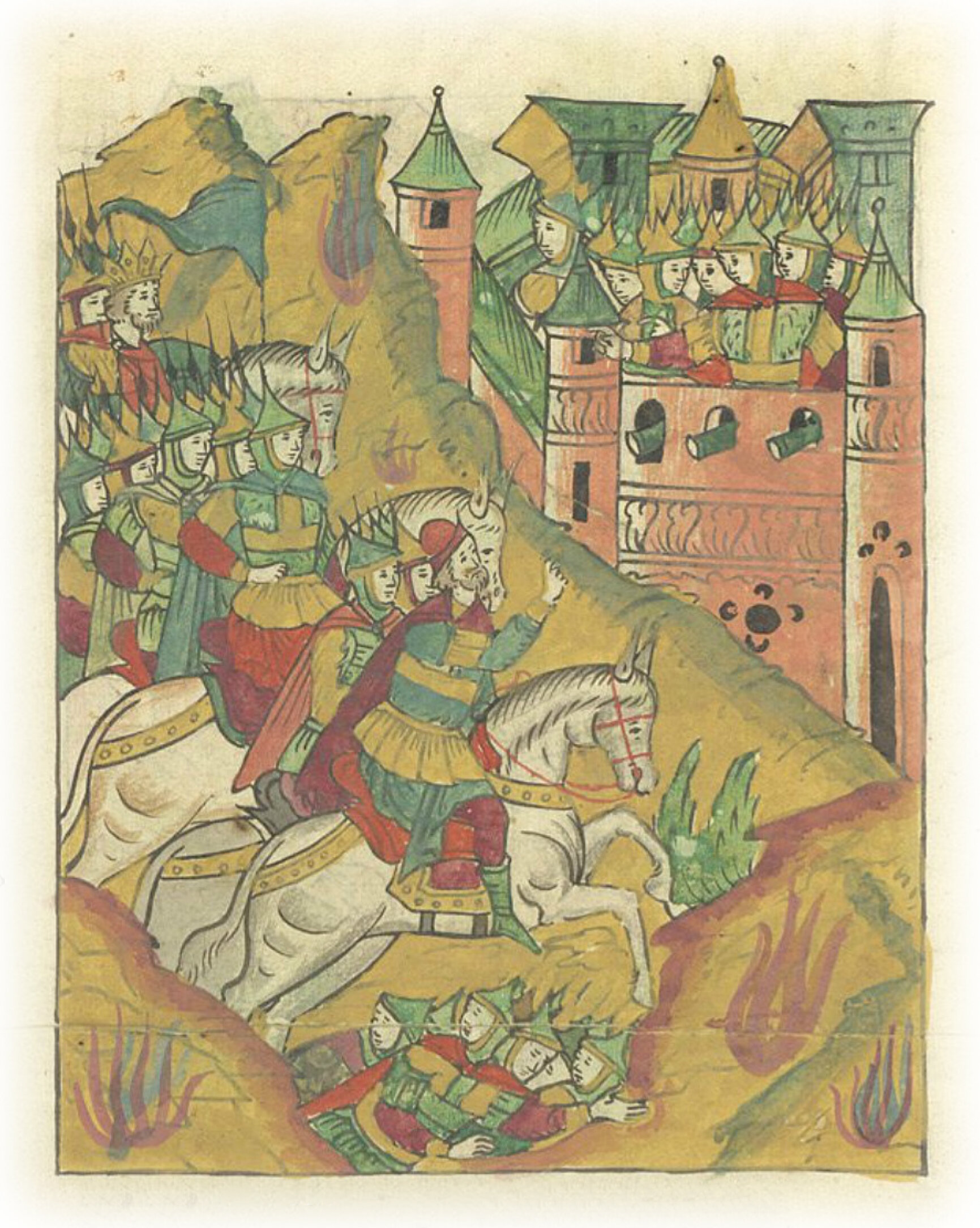 Князья же и мурзы, приезжая к городу, говорили Василию, чтобы город сдал, а царь им милость покажет; а не взяв города, царю прочь идти нельзя. Василий же отвечал: «Божьим велением город ставится, а без Божьего веления кто может город взять? А подождал бы царь немного великого князя воевод, которые за ним идут». Татары же отступили в станы свои.