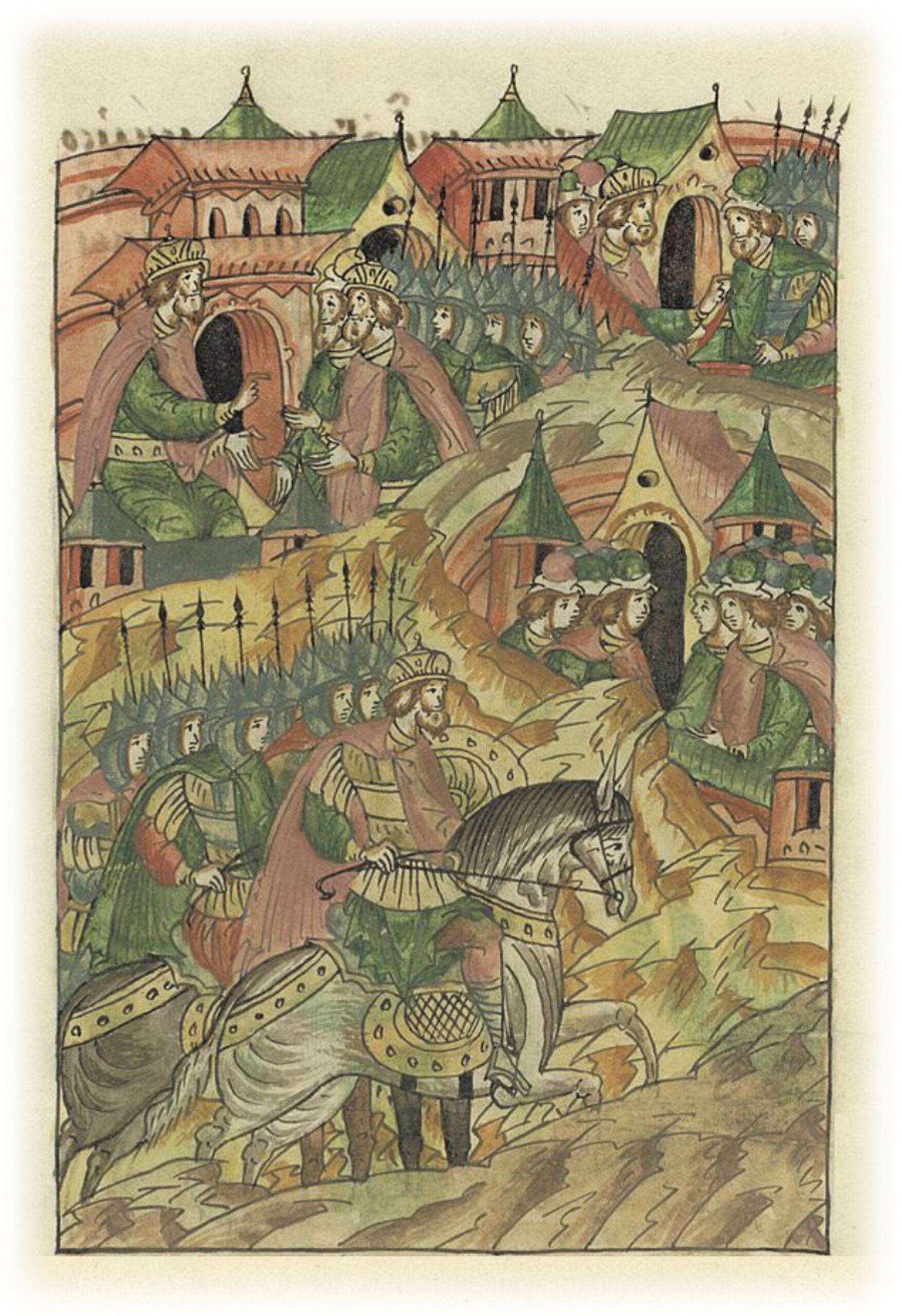 Языки говорят воеводам царя Ивана Васильевича, что магистр окопался большим рвом вокруг города Рындола, бьет из пушек и пищалей и приступает к Рындолу.