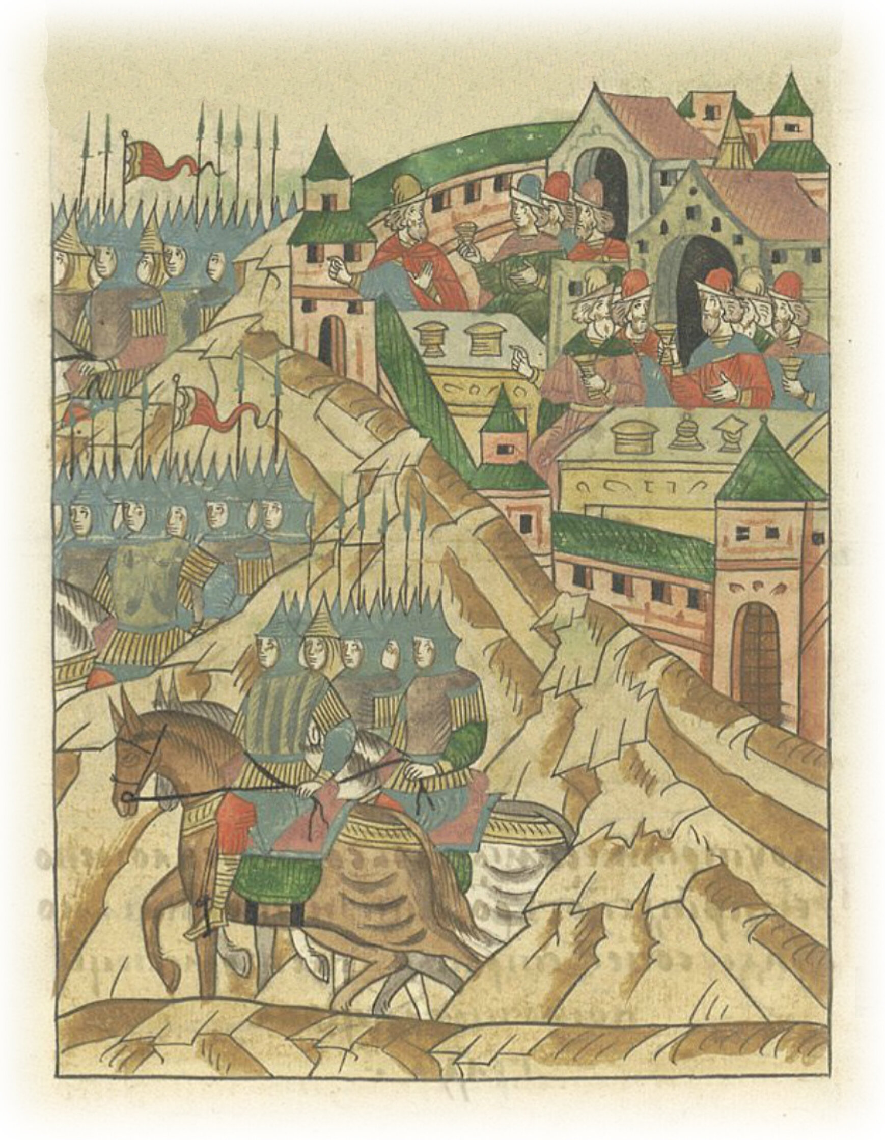 И в тот день к вечеру полки татарские отступили от города. Горожане же начали упиваться и веселиться, думая, что устрашились татары.