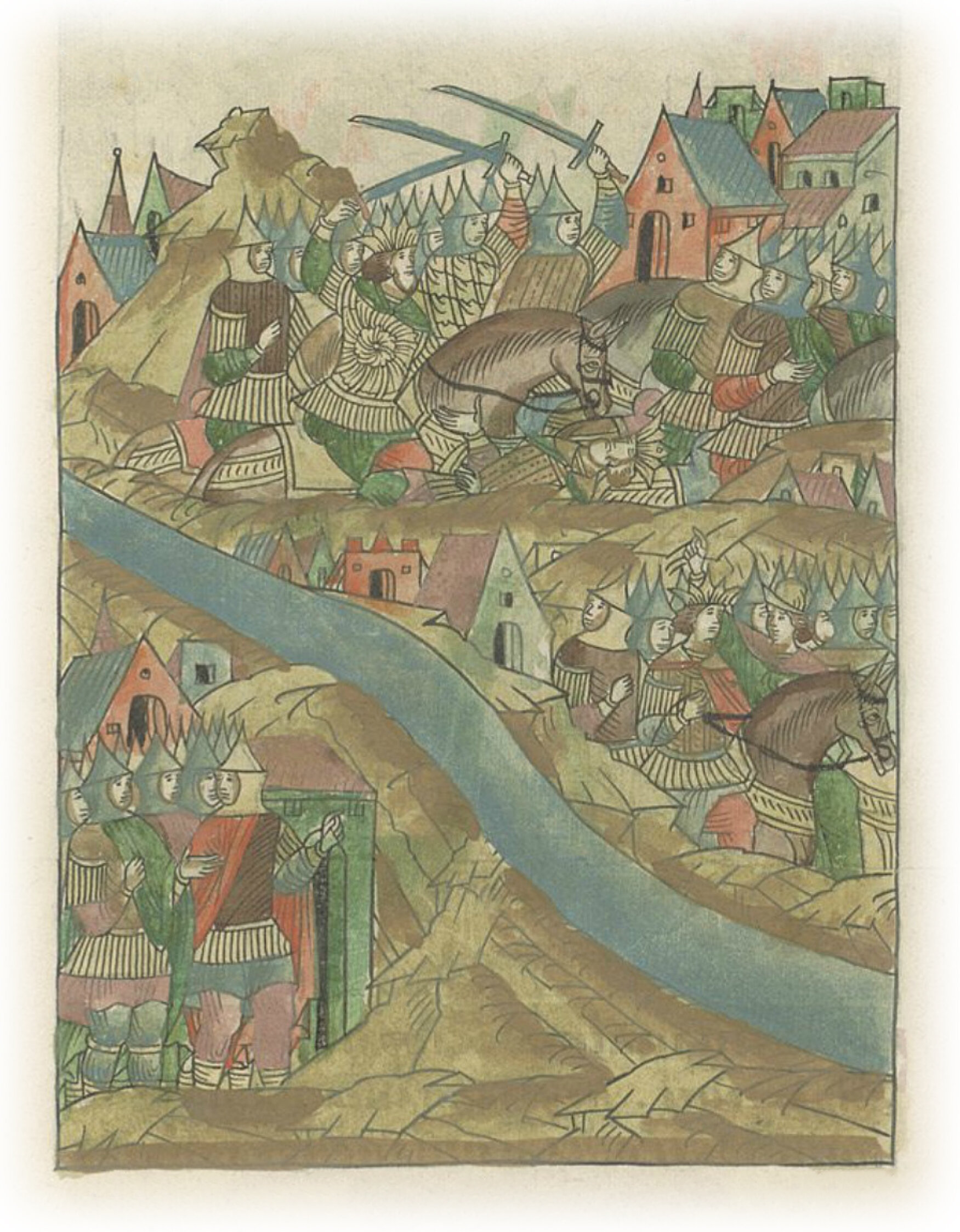 Царь же бежал в Орду; и пришел на него Ногайский царь Ивак, и Орду взял, и его убил. Единственный царевич хотел за рекою Окою взять окраину.