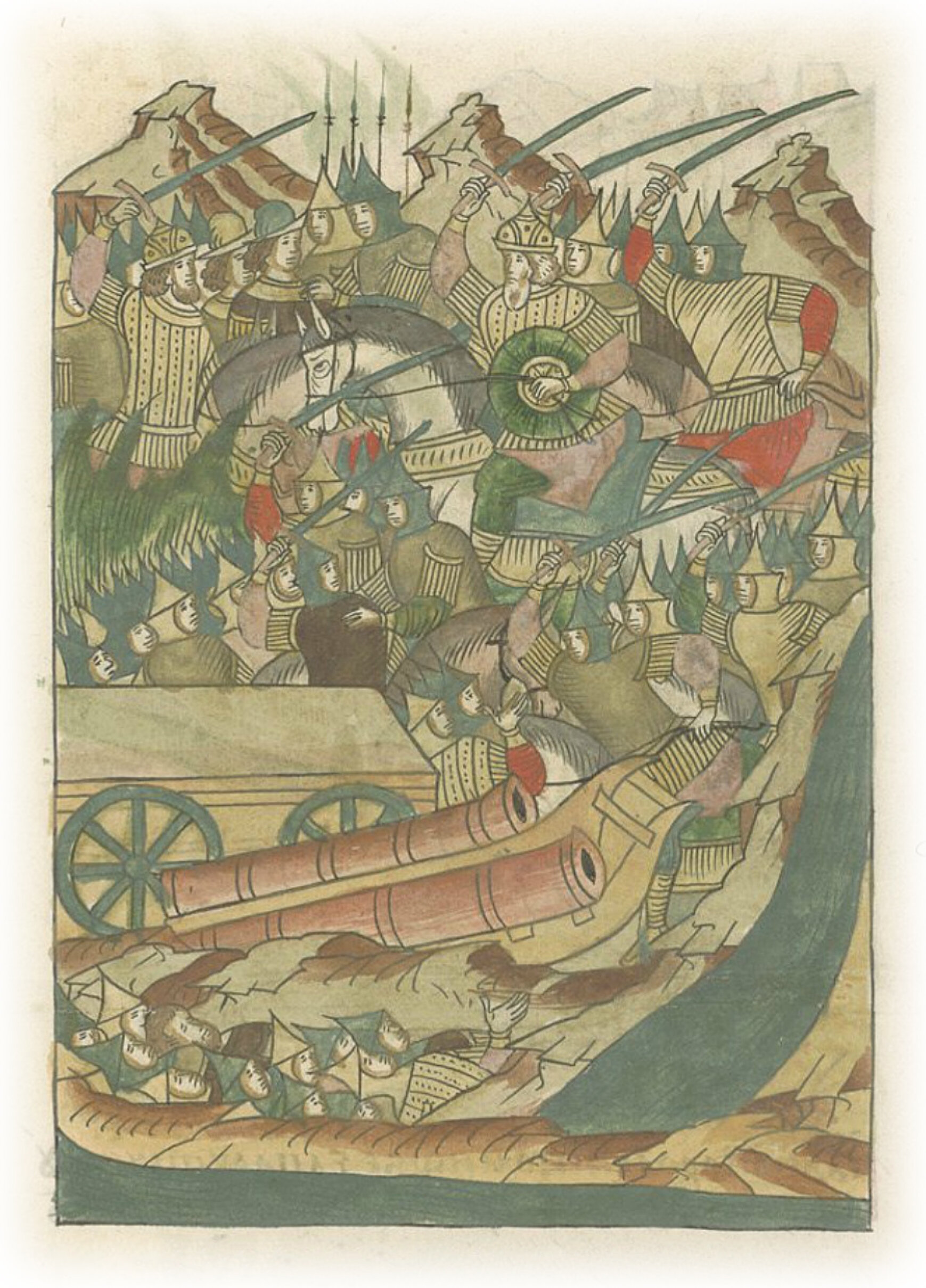 Языки говорят воеводам царя Ивана Васильевича, что магистр окопался большим рвом вокруг города Рындола, бьет из пушек и пищалей и приступает к Рындолу.