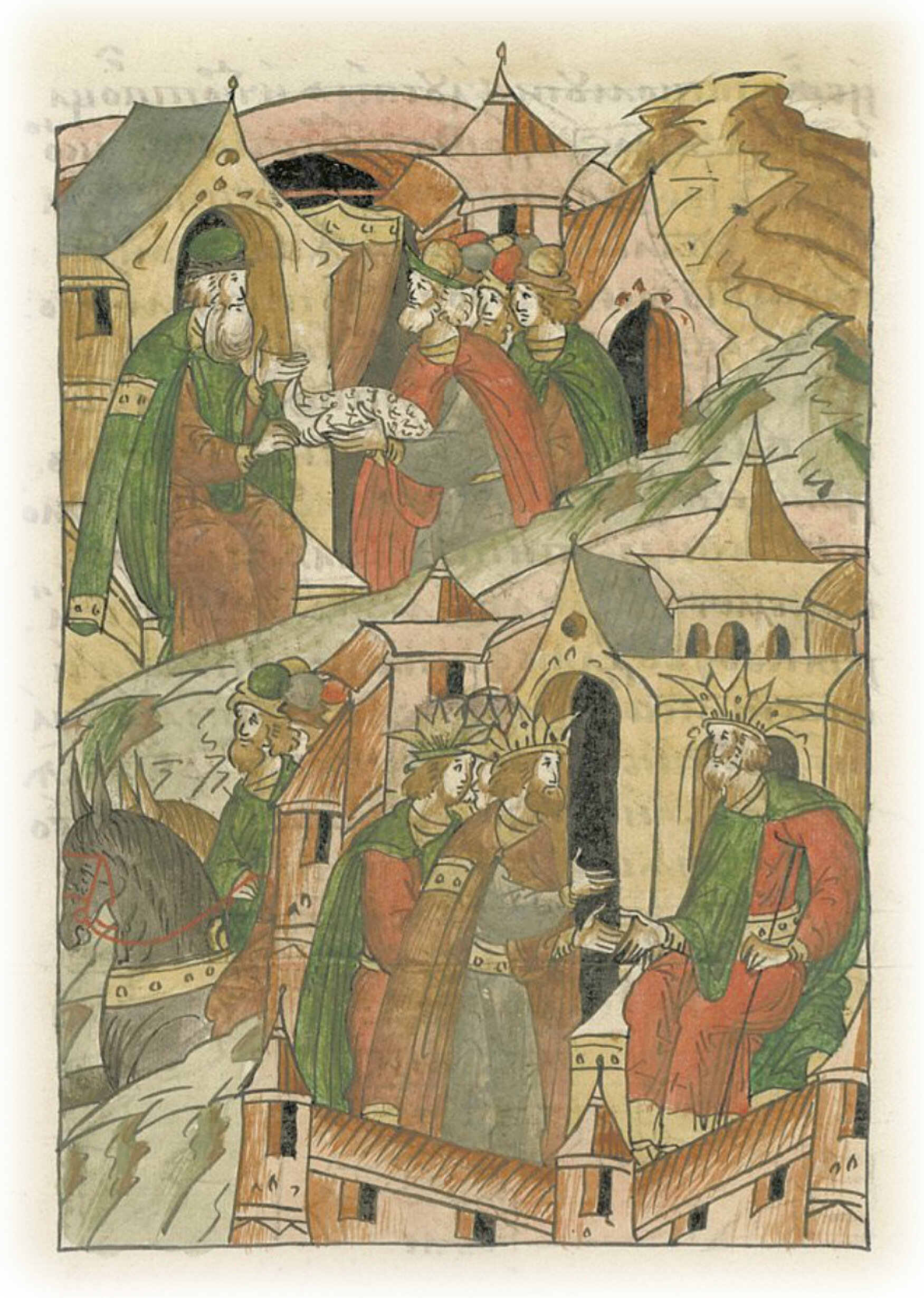 Ругодивские посадники Яким и Захар приезжают в Москву. Воеводы царя Ивана Васильевича Алексей Адашев и Иван Михайлов сообщают им, что государь пожалует их, если сдадут его воеводам помимо Ругодива Вышгород.