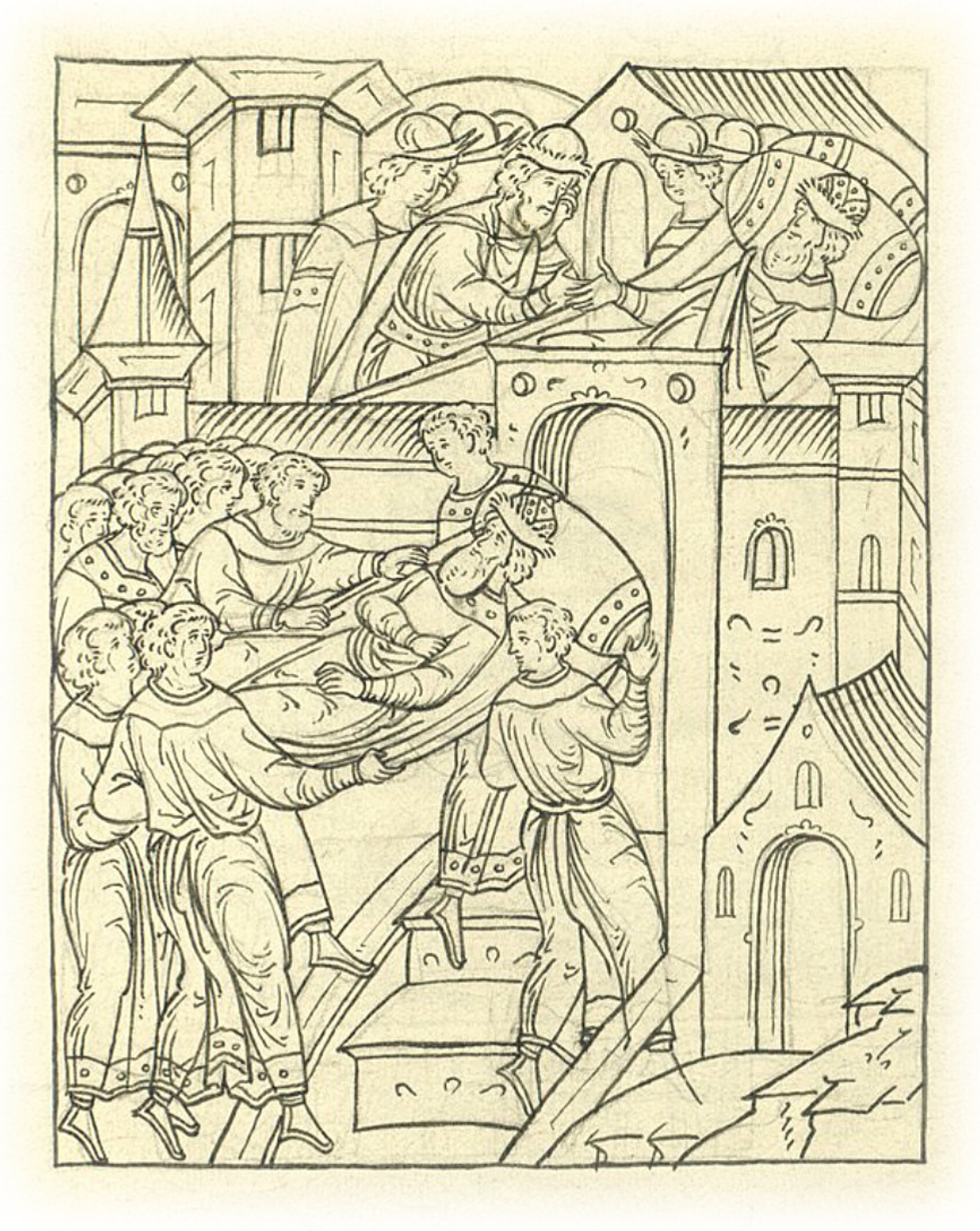И внесли его в постельные хоромы. И так изволением Божьим, хотя и крепко болезнуя, но все же алмазная* его царева душа (возносила) усиленное благодарение и прилежные молитвы к Богу, непрестанно бывшие в устах его. И в тот же день приехал к великому князю брат его князь Андрей Иванович. * т.е. твердая и чистая как алмаз.