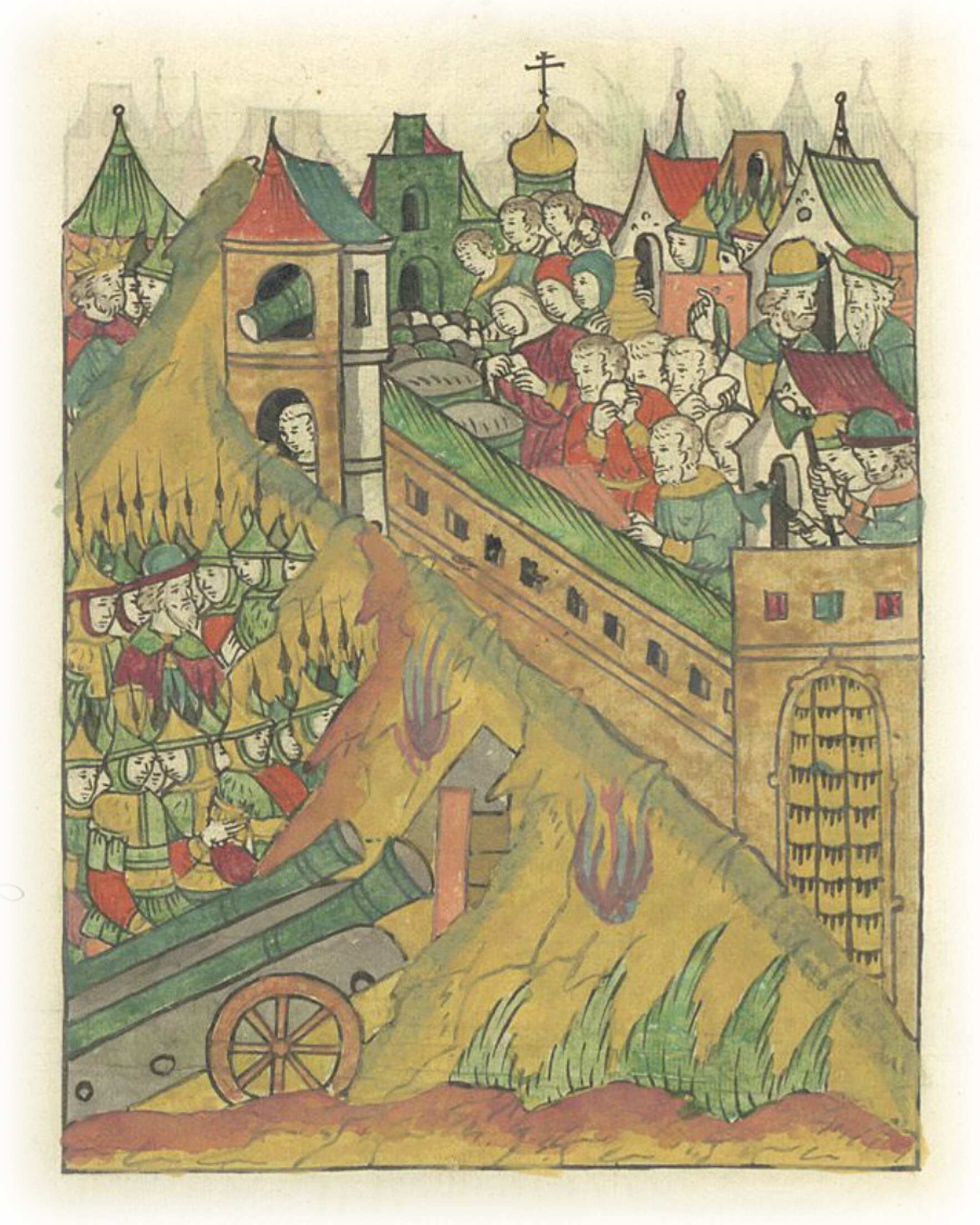 Василий же и Александр со всеми людьми и с женским полом город крепили; и на стену велели колья и камни, и воду носить.