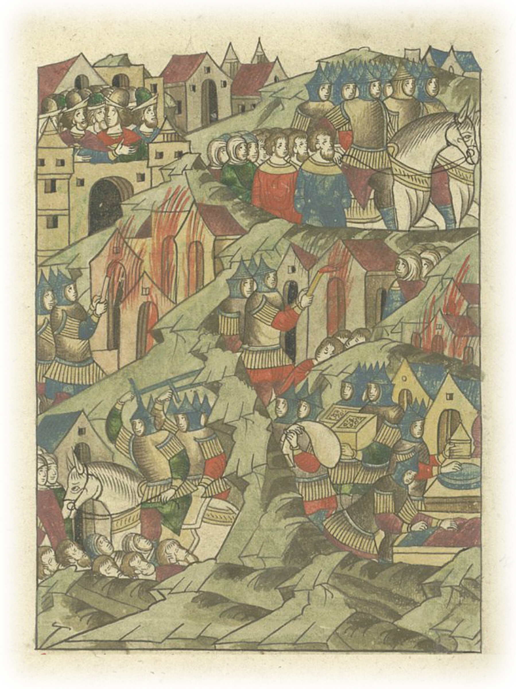 и сожгли весь посад, все уезды и села завоевали и сожгли, имения все захватили, а самих людей убили или увели в плен.