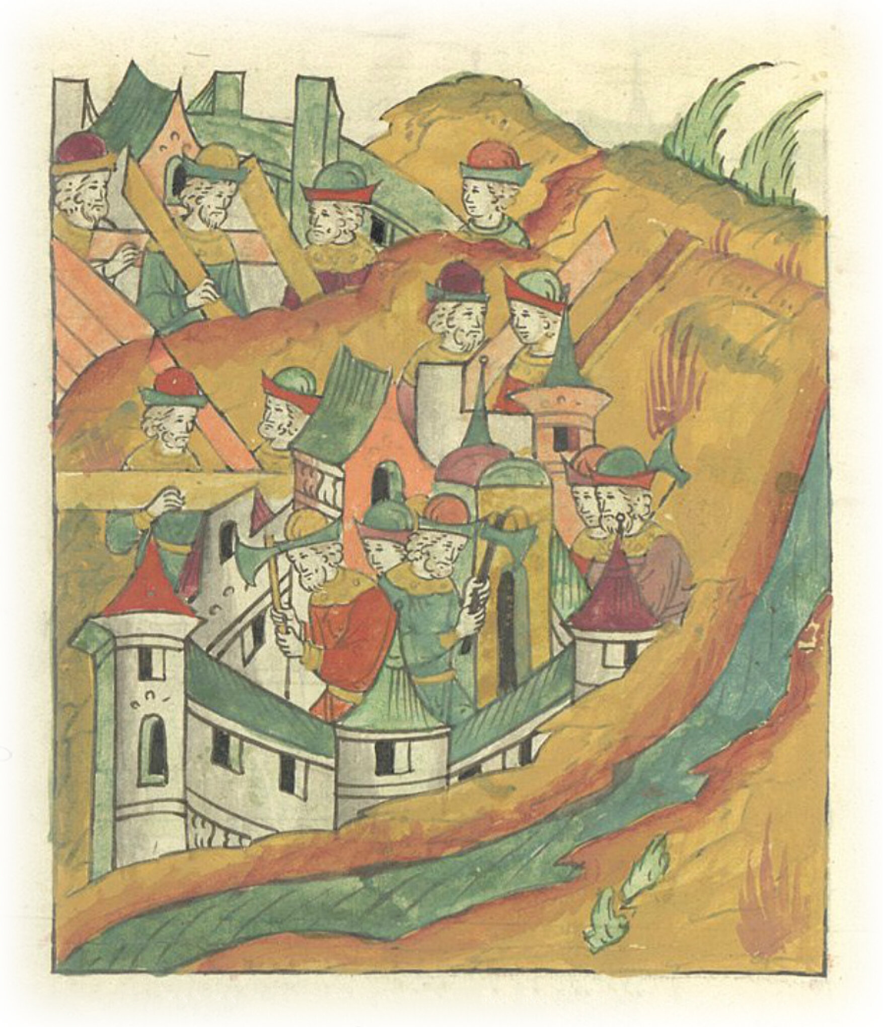 Языки говорят воеводам царя Ивана Васильевича, что магистр окопался большим рвом вокруг города Рындола, бьет из пушек и пищалей и приступает к Рындолу.