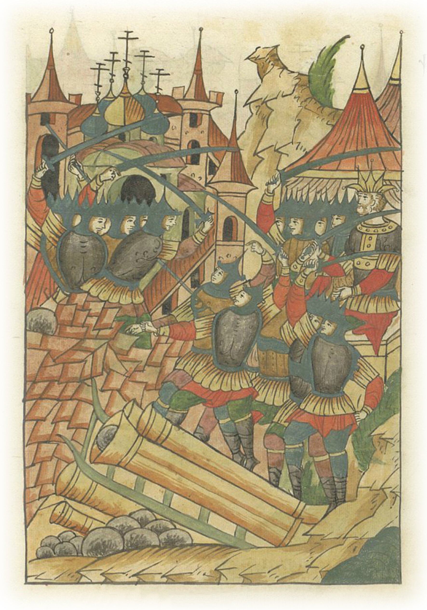 Языки говорят воеводам царя Ивана Васильевича, что магистр окопался большим рвом вокруг города Рындола, бьет из пушек и пищалей и приступает к Рындолу.