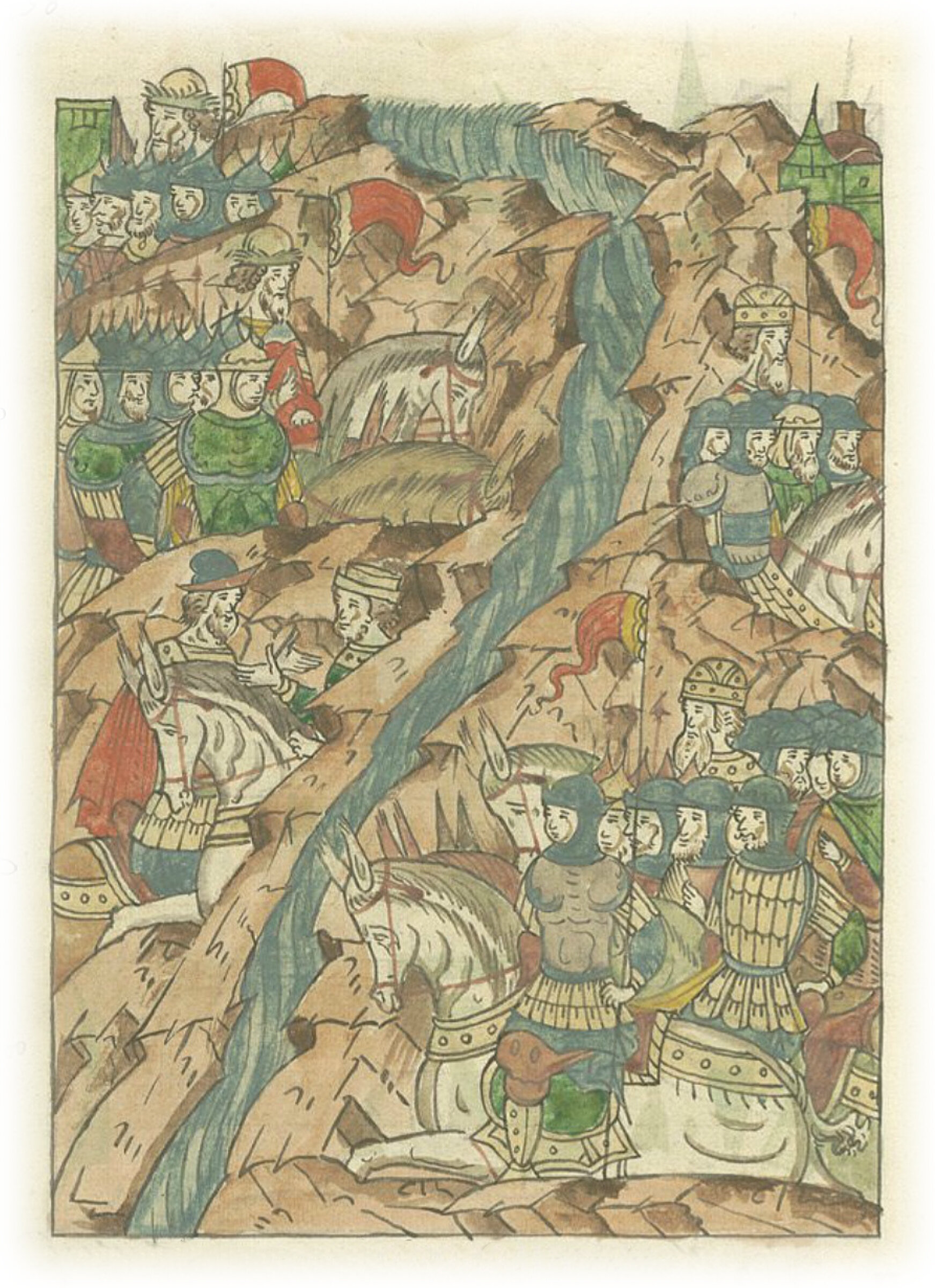 Литовский князь Витовт выходит навстречу войску великого князя Василия Дмитриевича. Простояв много дней на реке Угре, князья заключают мир.