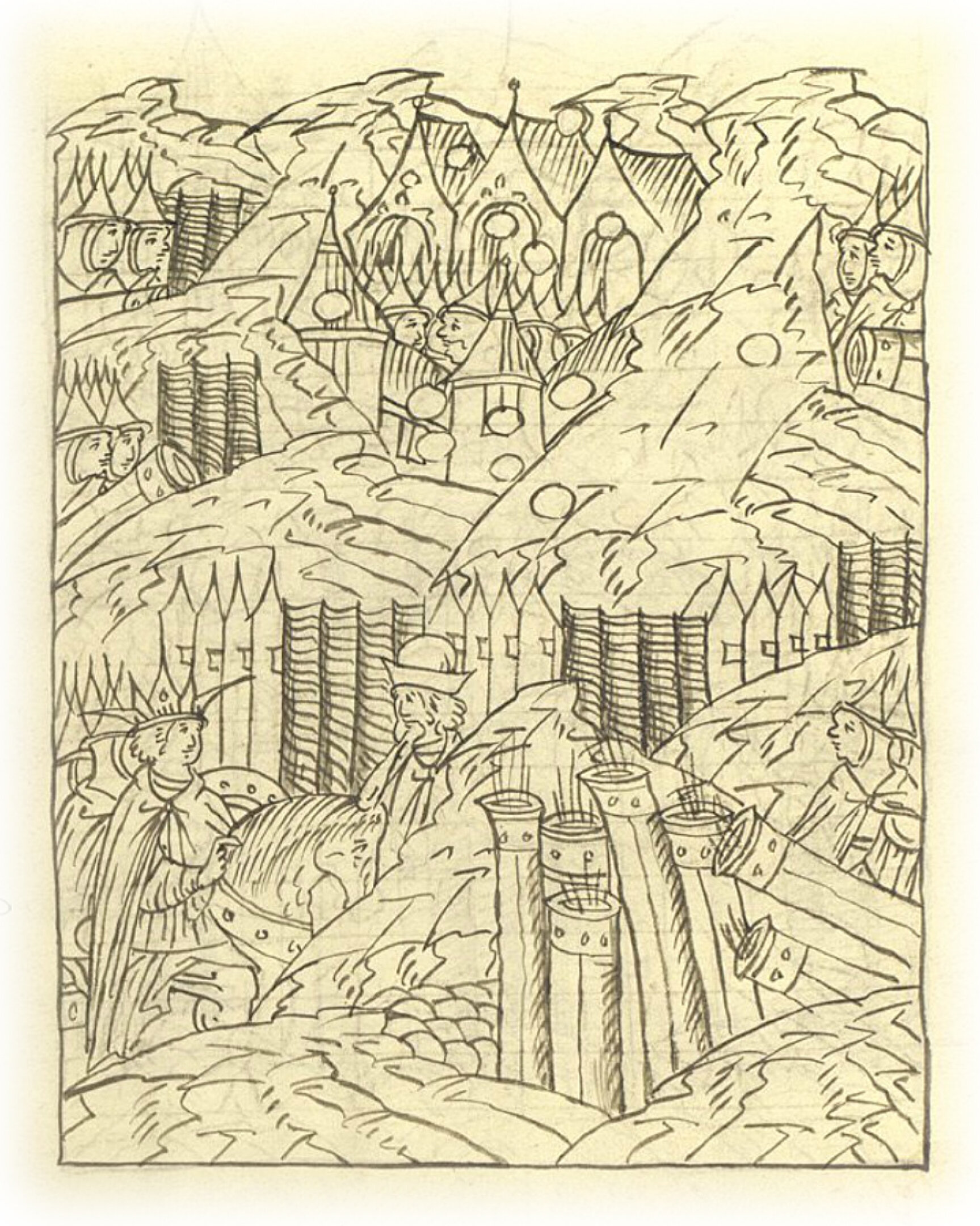 И приказал государь боярину своему Михаилу Яковлевичу Морозову вокруг всего города пушки поставить и бить беспрестанно по городу.