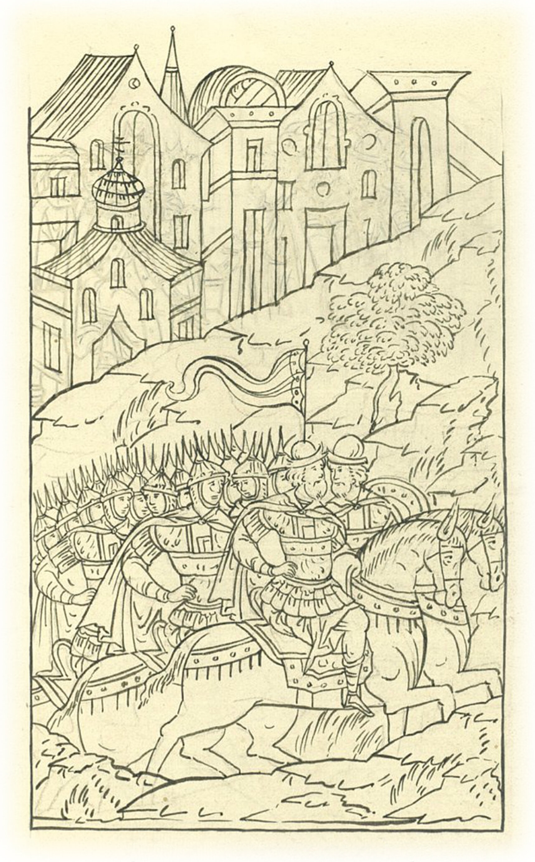 Воеводы царя Ивана Васильевича, разделившись, идут в погоню за царем Емгурчеем.
