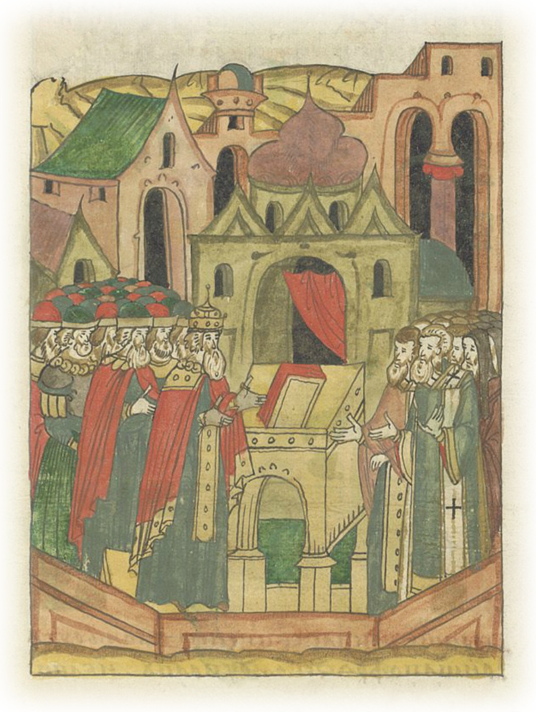 Папа же служил свою мессу, а прежде молебен пел по-латински, а Исидор, митрополит Русский, со своими греками – по-гречески, и, отпев молебны, закончили свою службу