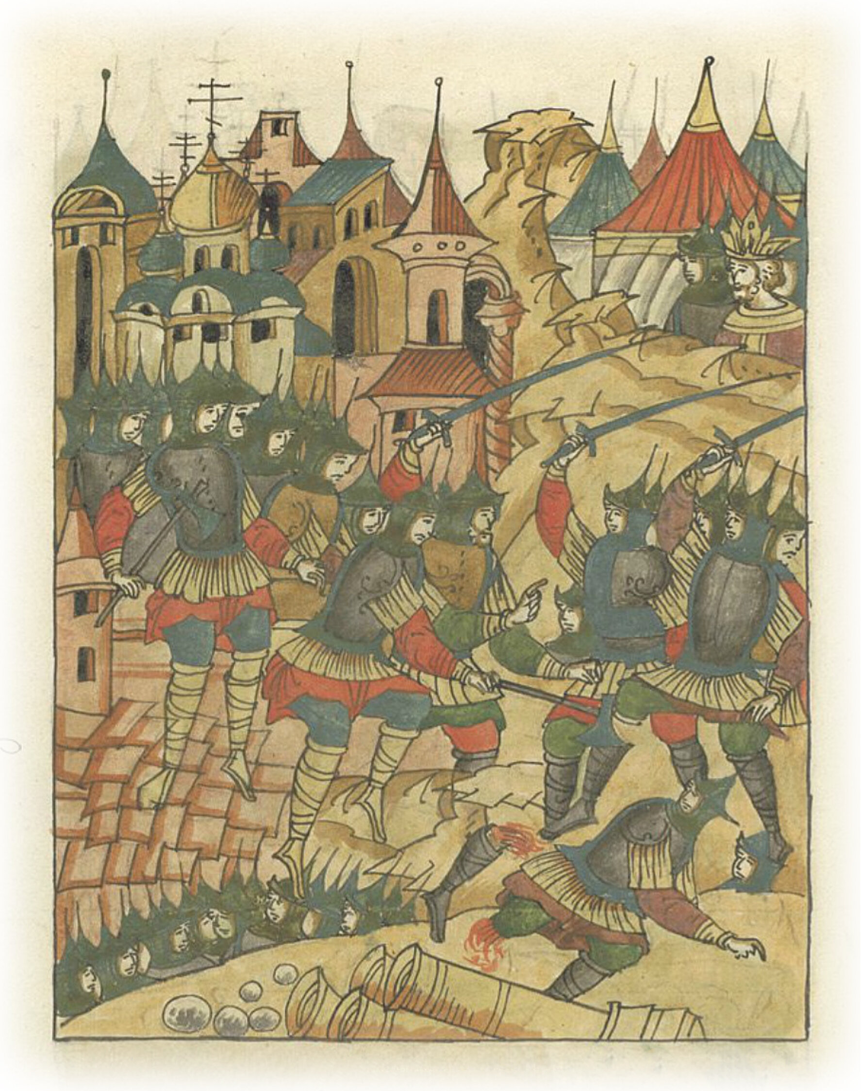 Языки говорят воеводам царя Ивана Васильевича, что магистр окопался большим рвом вокруг города Рындола, бьет из пушек и пищалей и приступает к Рындолу.