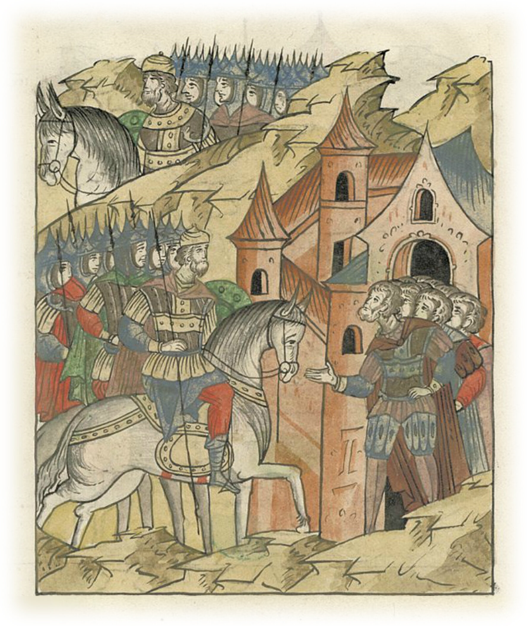 И били челом немцы князю Ярославу, и помирился князь Ярослав с немцами, и возвратился к Новгороду.