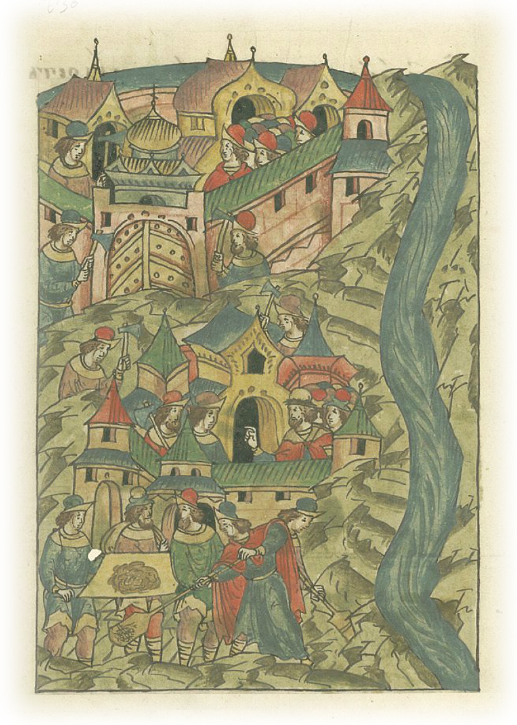 В том же году великий князь Михаил Александрович построил Новый городок* на Волге, с приступа** вокруг него выкопали ров, а в Твери достроили ворота (в церкви) святого Василия. * Старица; ** уязвимая сторона.