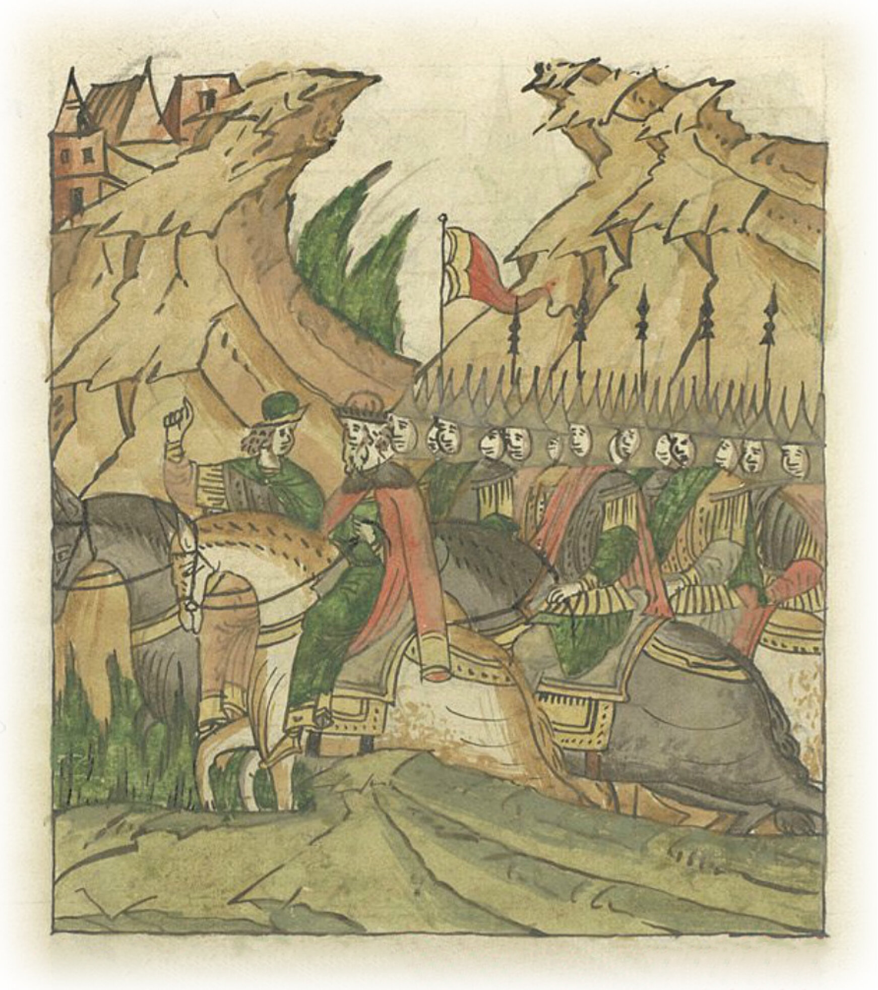 Языки говорят воеводам царя Ивана Васильевича, что магистр окопался большим рвом вокруг города Рындола, бьет из пушек и пищалей и приступает к Рындолу.