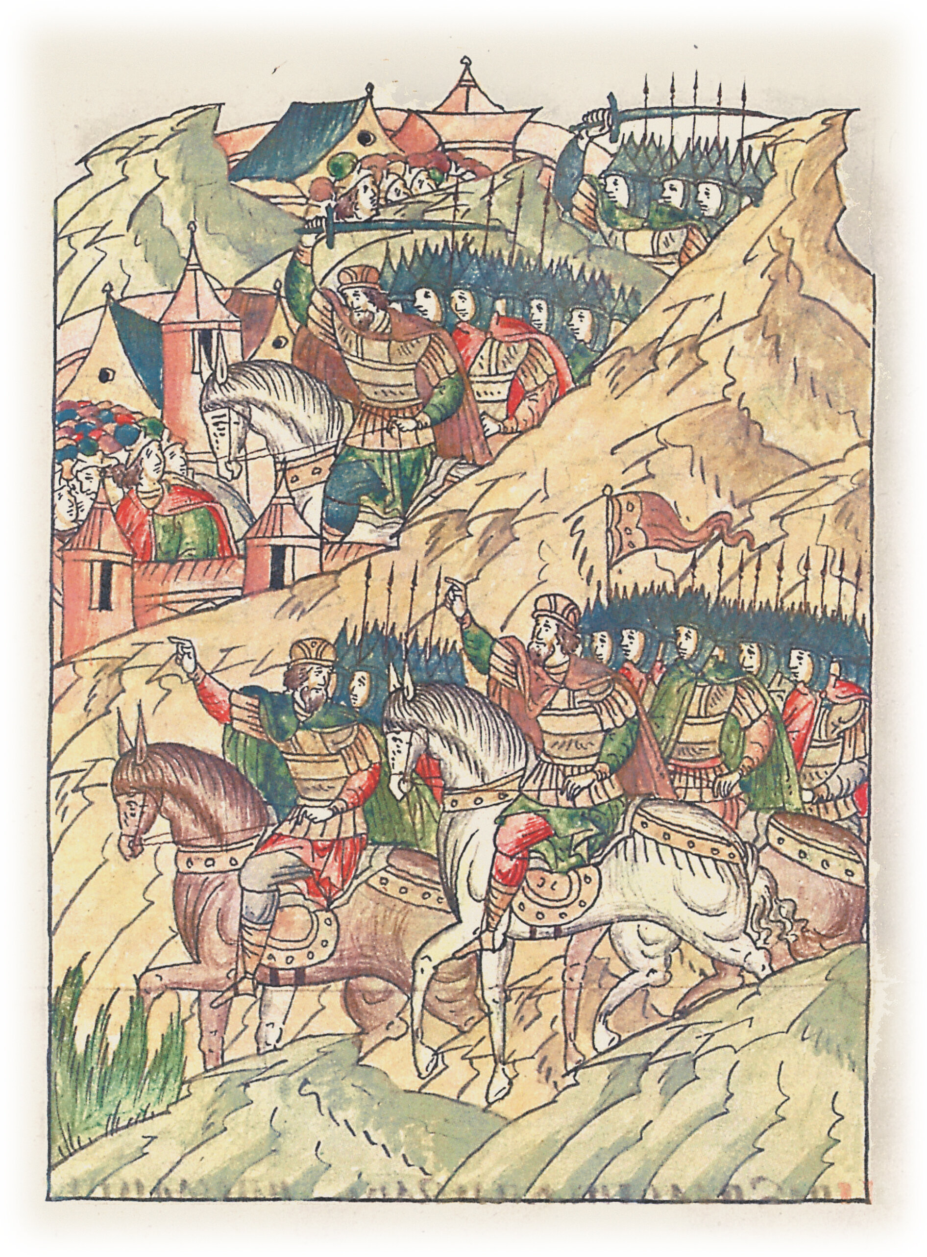 Языки говорят воеводам царя Ивана Васильевича, что магистр окопался большим рвом вокруг города Рындола, бьет из пушек и пищалей и приступает к Рындолу.