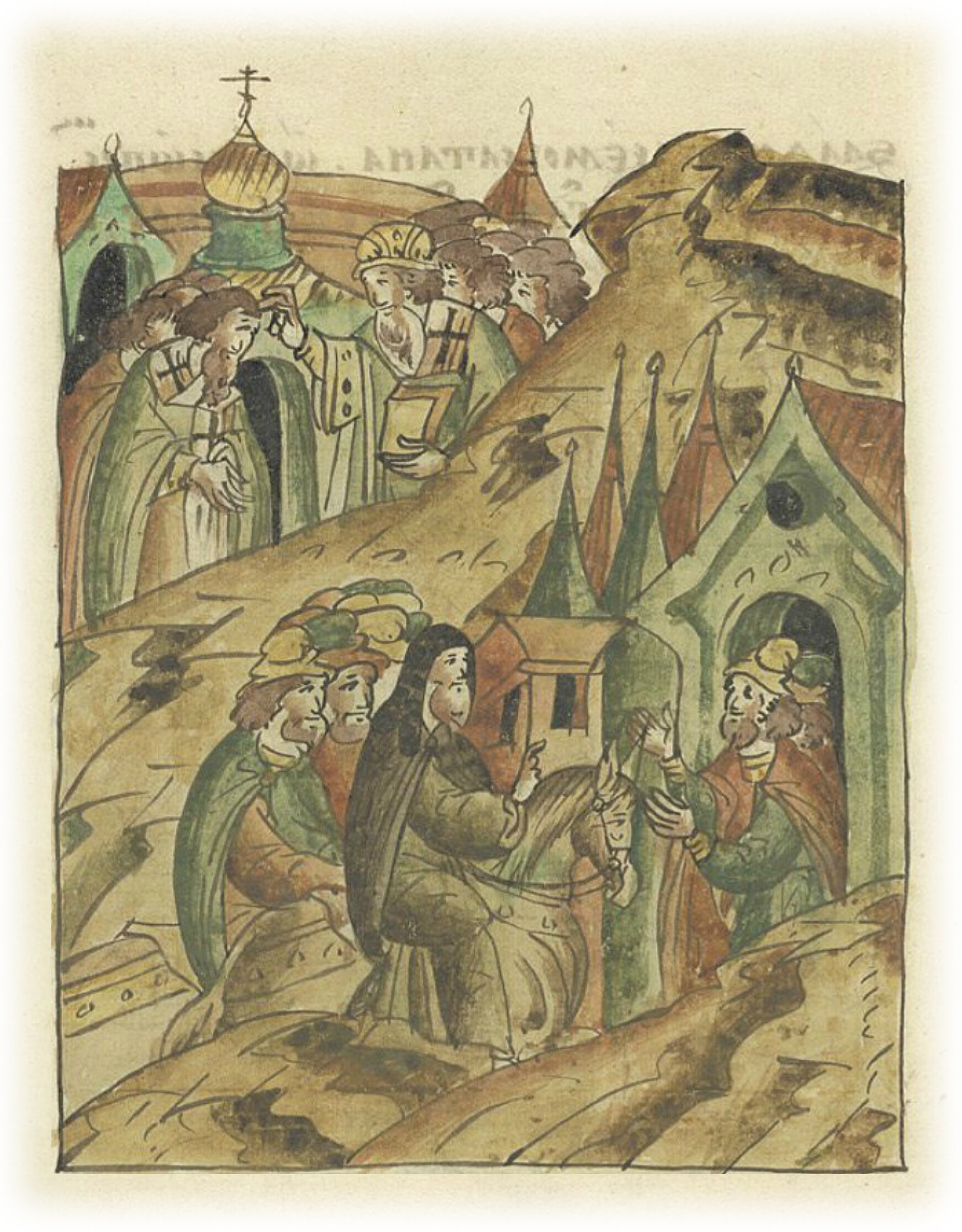 Инок Антоний, поставленный в епископы митрополитом Киевским и всея Руси Матфеем, приходит в Новгород.