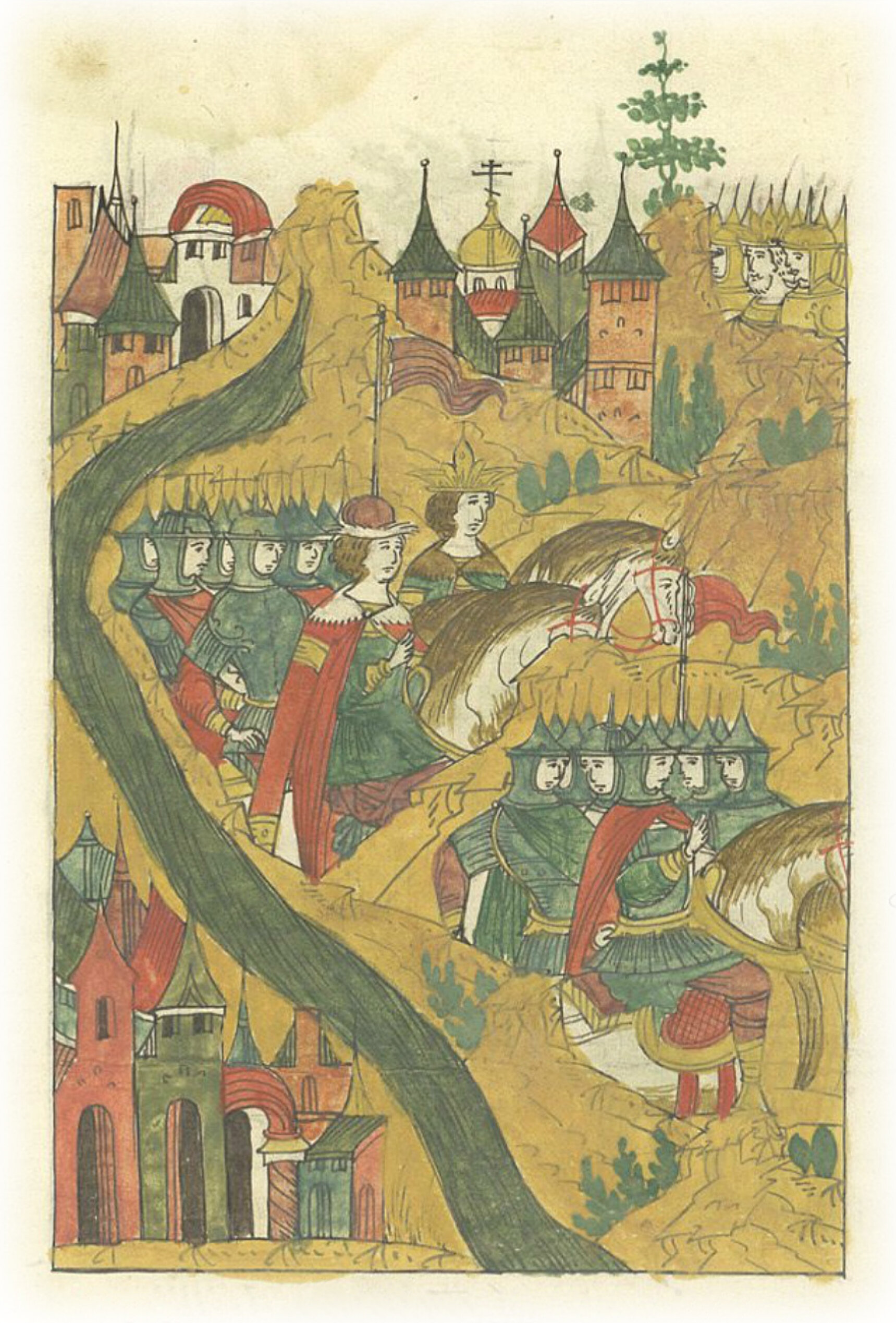 Царь Иван Васильевич с князем Владимиром Андреевичем, Казанским царем Симеоном, боярами и боярскими детьми идет в Тулу.