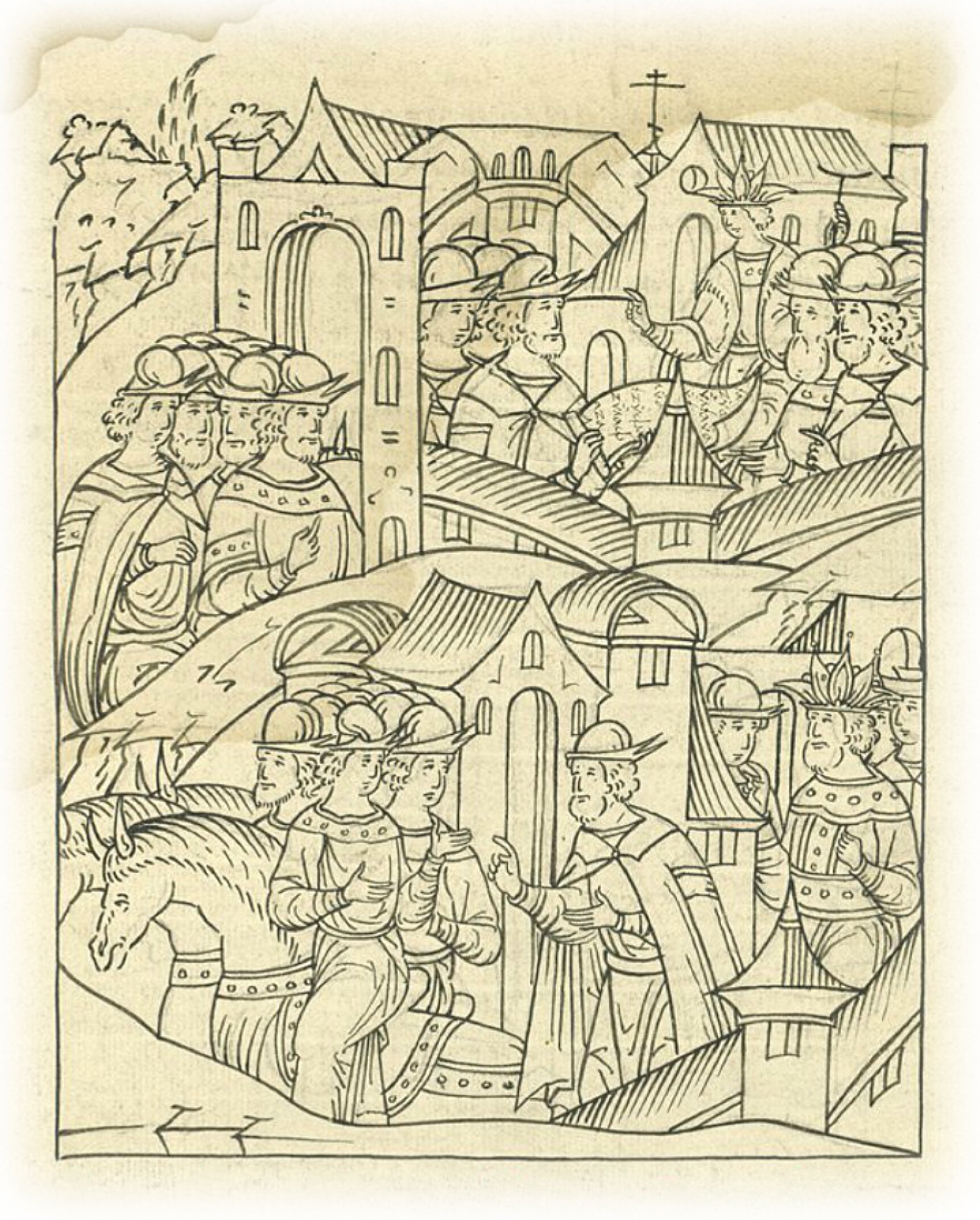 Ругодивские посадники Яким и Захар приезжают в Москву. Воеводы царя Ивана Васильевича Алексей Адашев и Иван Михайлов сообщают им, что государь пожалует их, если сдадут его воеводам помимо Ругодива Вышгород.
