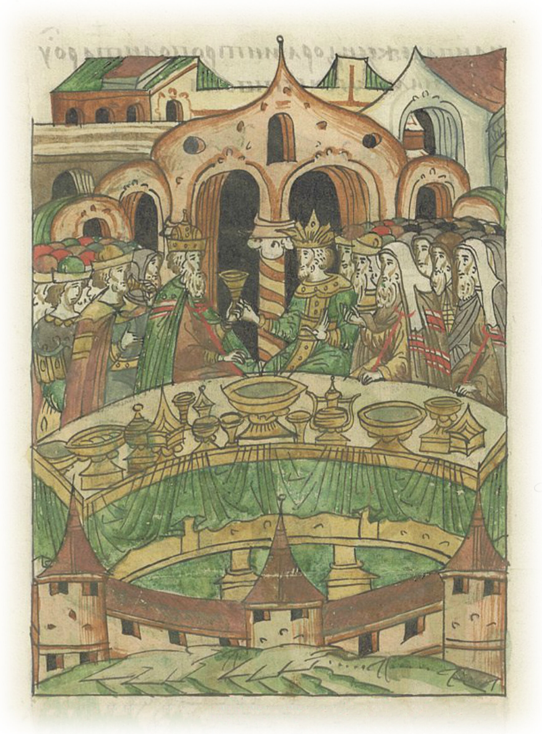 Ругодивские посадники Яким и Захар приезжают в Москву. Воеводы царя Ивана Васильевича Алексей Адашев и Иван Михайлов сообщают им, что государь пожалует их, если сдадут его воеводам помимо Ругодива Вышгород.