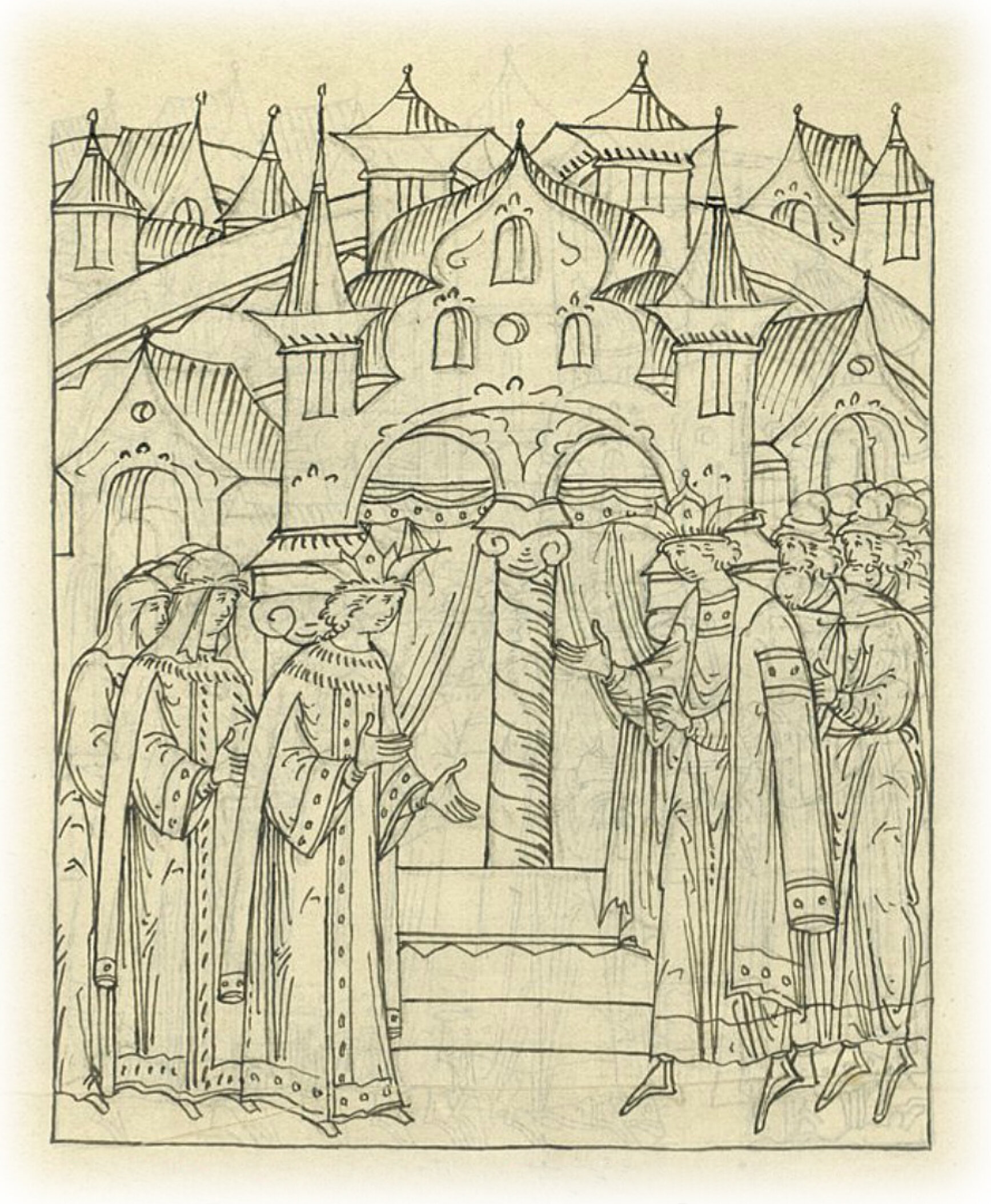 Свадьба великого царя. В ту же зиму благоверный царь и великий князь Иван Васильевич всея Руси решил жениться и выбрал себе в невесты дочь своего окольничего Романа Юрьевича Анастасию.