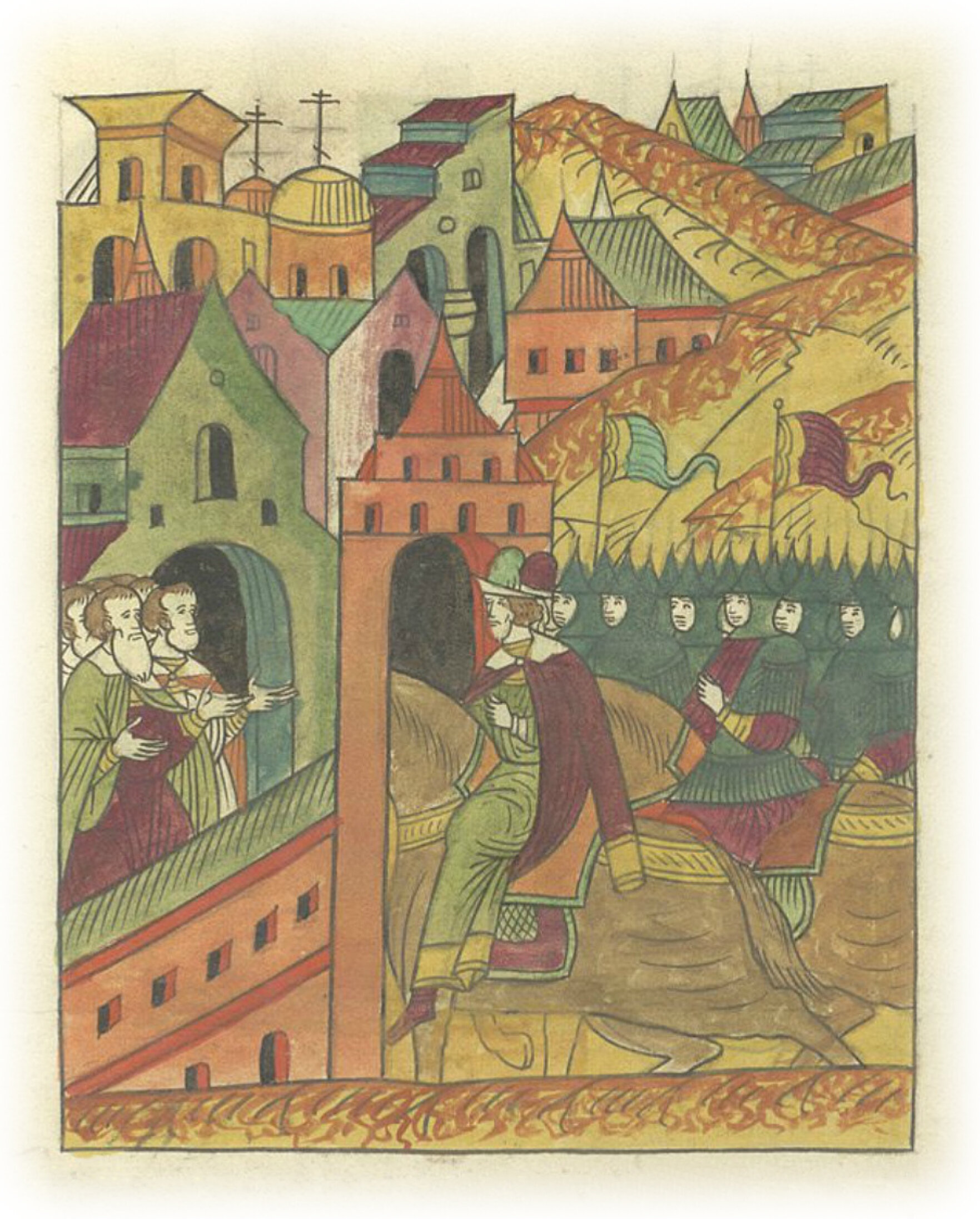 Воевода Василий Андреевич Бутурлин с войском возвращается в Смоленск после войны в Литовской земле.