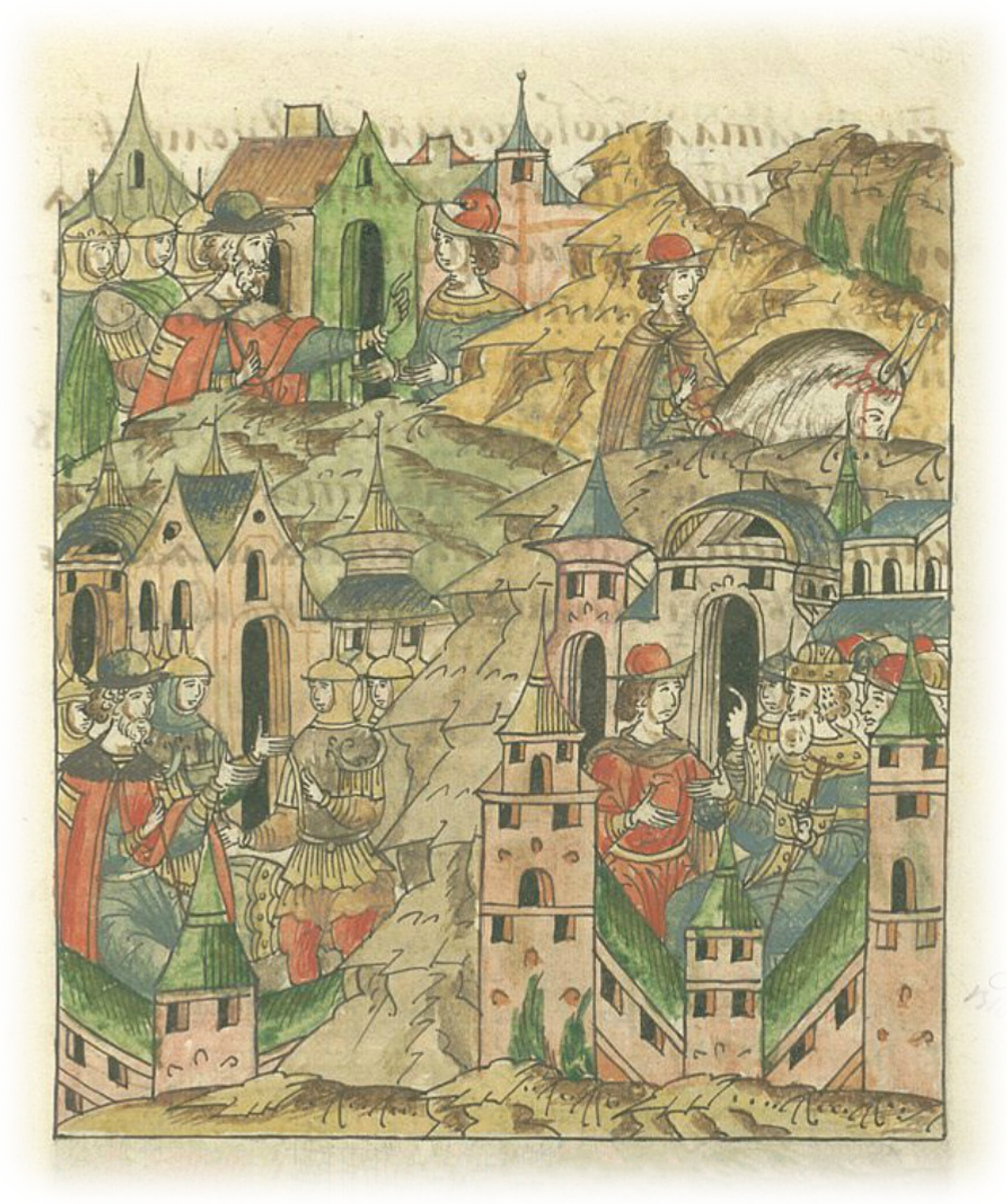 Языки говорят воеводам царя Ивана Васильевича, что магистр окопался большим рвом вокруг города Рындола, бьет из пушек и пищалей и приступает к Рындолу.