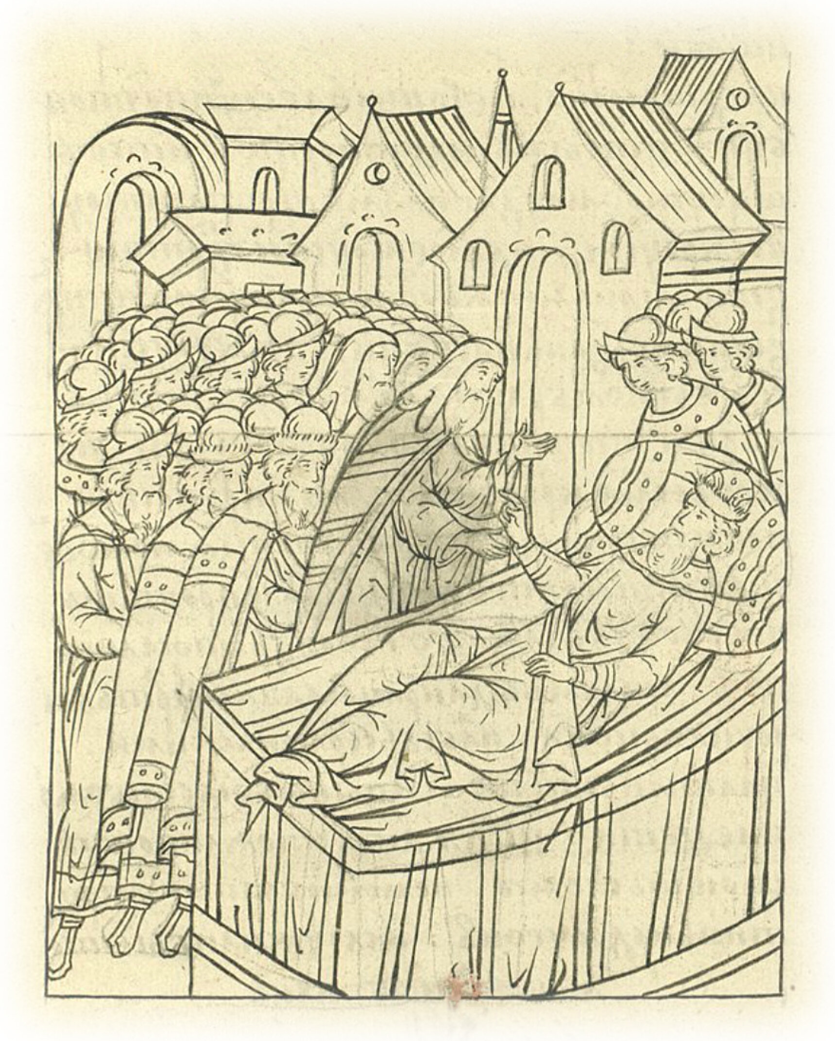 И потом снова возлег на одре своем, и призвал отца своего Даниила митрополита и братьев своих, князя Юрия Ивановича и князя Андрея Ивановича, и бояр своих всех, ибо тогда многие бояре съехались из своих отчин, услышав о государевой немощи. Князь же великий Василий Иванович начал говорить отцу своему Даниилу митрополиту и братьям своим князю Юрию и князю Андрею, и боярам всем: «Приказываю сына своего Ивана Богу и пречистой Богородице и святым чудотворцам, и тебе, отцу своему Даниилу, митрополиту всея Руси, и даю ему свое государство, которым меня благословил отец мой князь великий Иван Васильевич всея Руси. И вы бы, мои братья князь Юрий и князь Андрей, стояли крепко в своем слове, на чем крест целовали, и договоры были между нами; и вы бы, братья мои, о земском устроении, о ратных делах против недругов сына моего и своих стояли бы вместе, чтобы была православных христиан рука высока над басурманскими и латынскими; а вы бы, бояре и боярские дети, и княжата, стояли вместе с моим сыном и с моими братьями против недругов, а служили бы моему сыну, как мне служили, честно».
