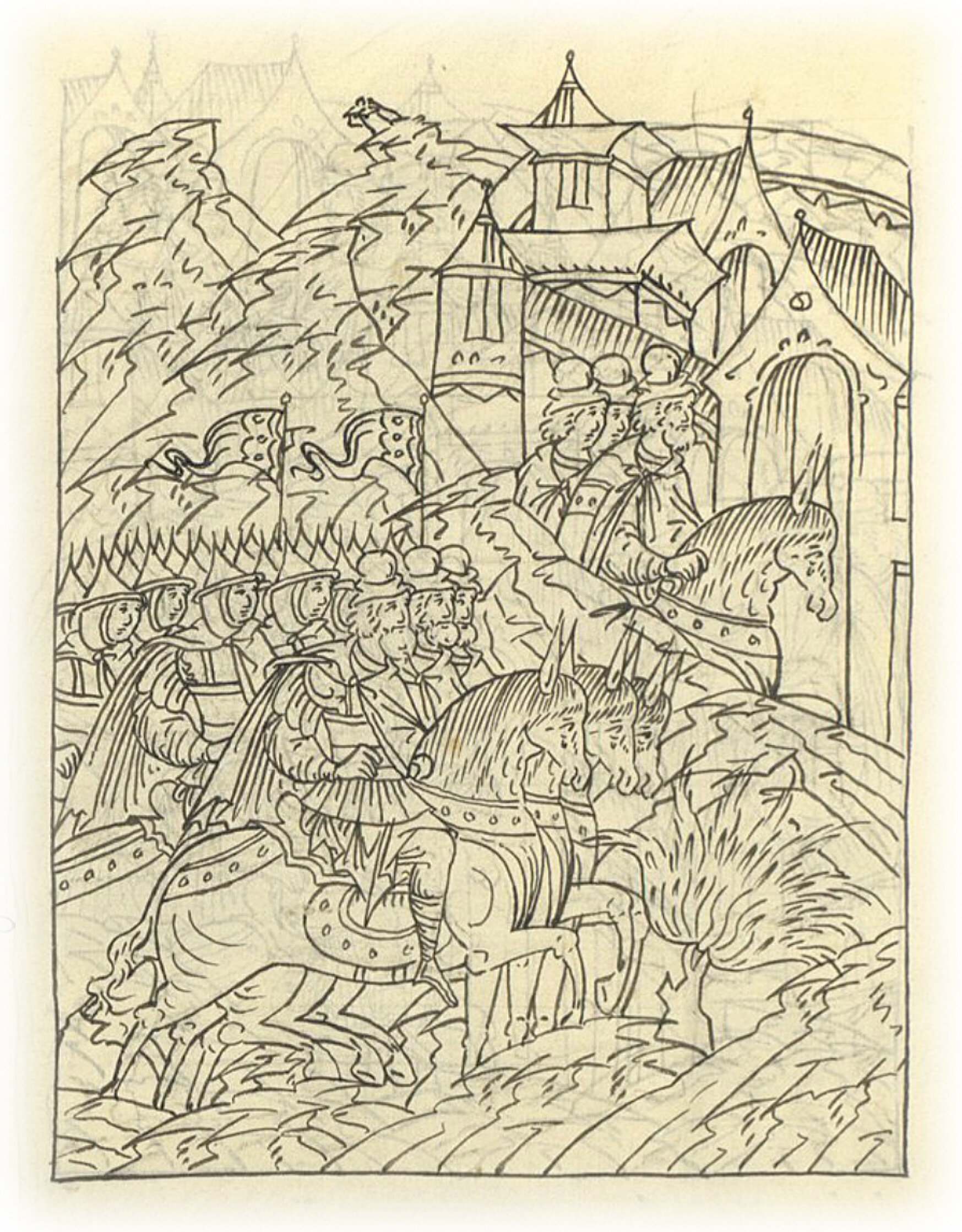 Языки говорят воеводам царя Ивана Васильевича, что магистр окопался большим рвом вокруг города Рындола, бьет из пушек и пищалей и приступает к Рындолу.