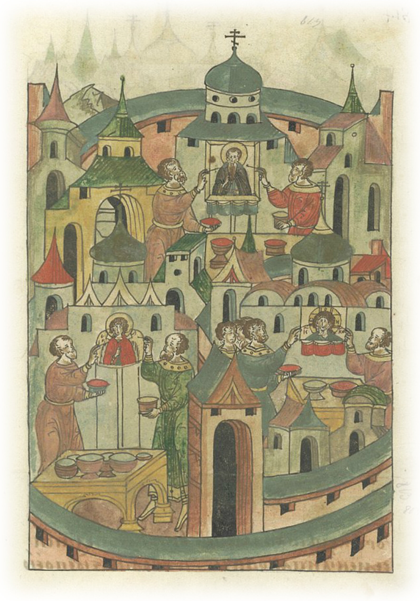 Завершение росписи трех церквей в Москве: в монастыре святого Спаса, святого архангела Михаила и святого Иоанна Лествичника.