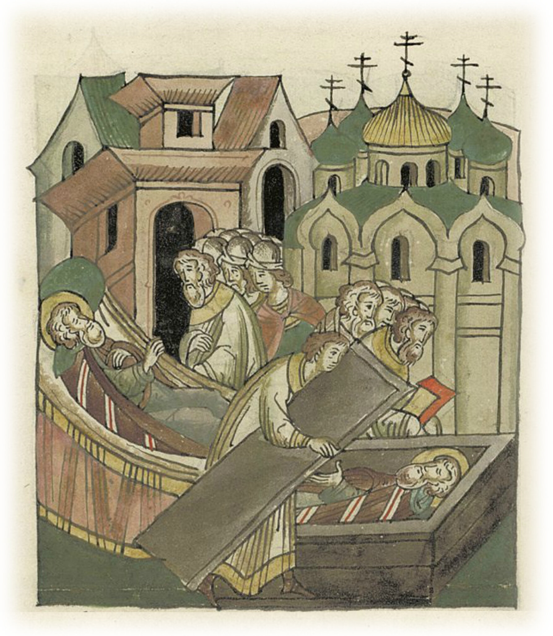 Кончина Новгородского владыки Ильи и его похороны в притворе церкви святой Софии.