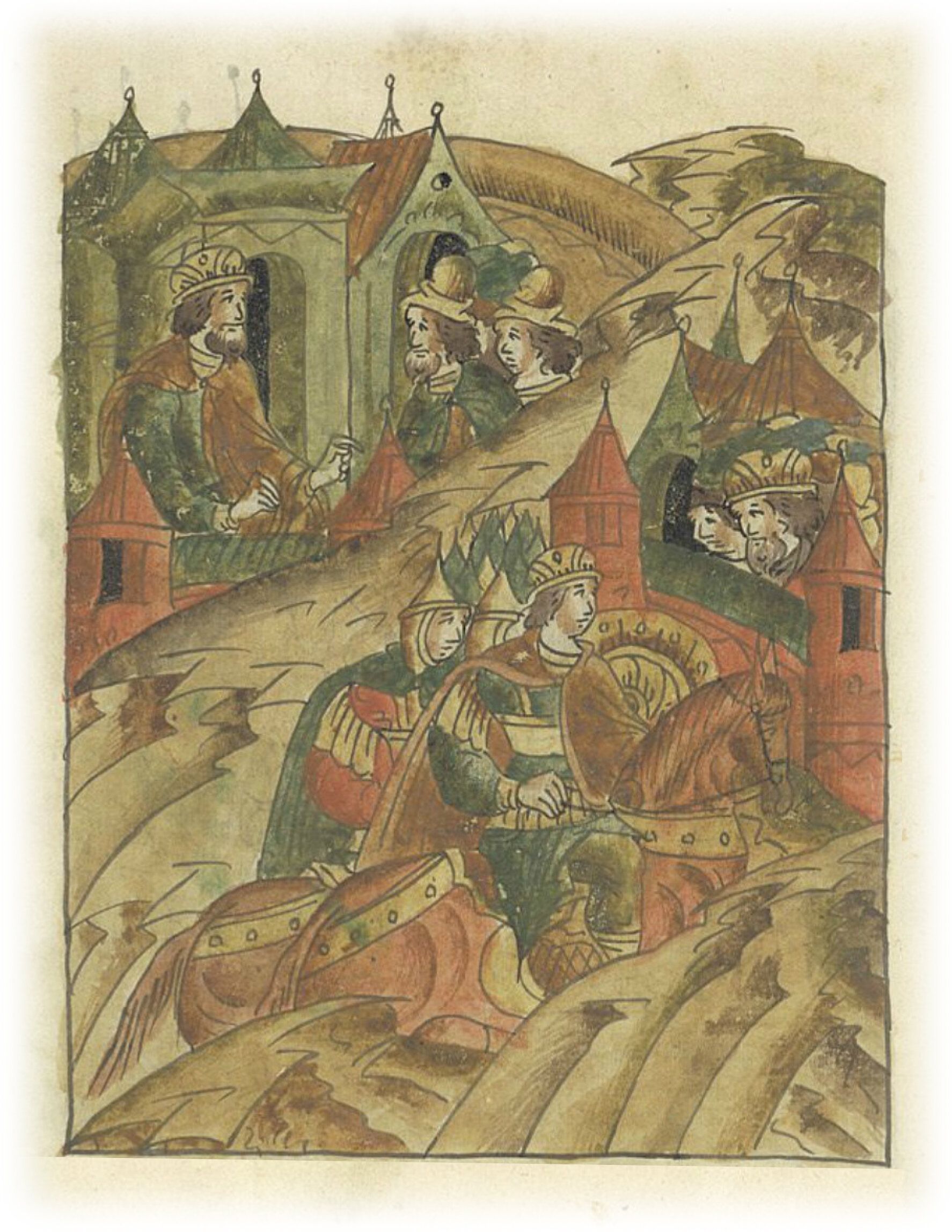 Ругодивские посадники Яким и Захар приезжают в Москву. Воеводы царя Ивана Васильевича Алексей Адашев и Иван Михайлов сообщают им, что государь пожалует их, если сдадут его воеводам помимо Ругодива Вышгород.