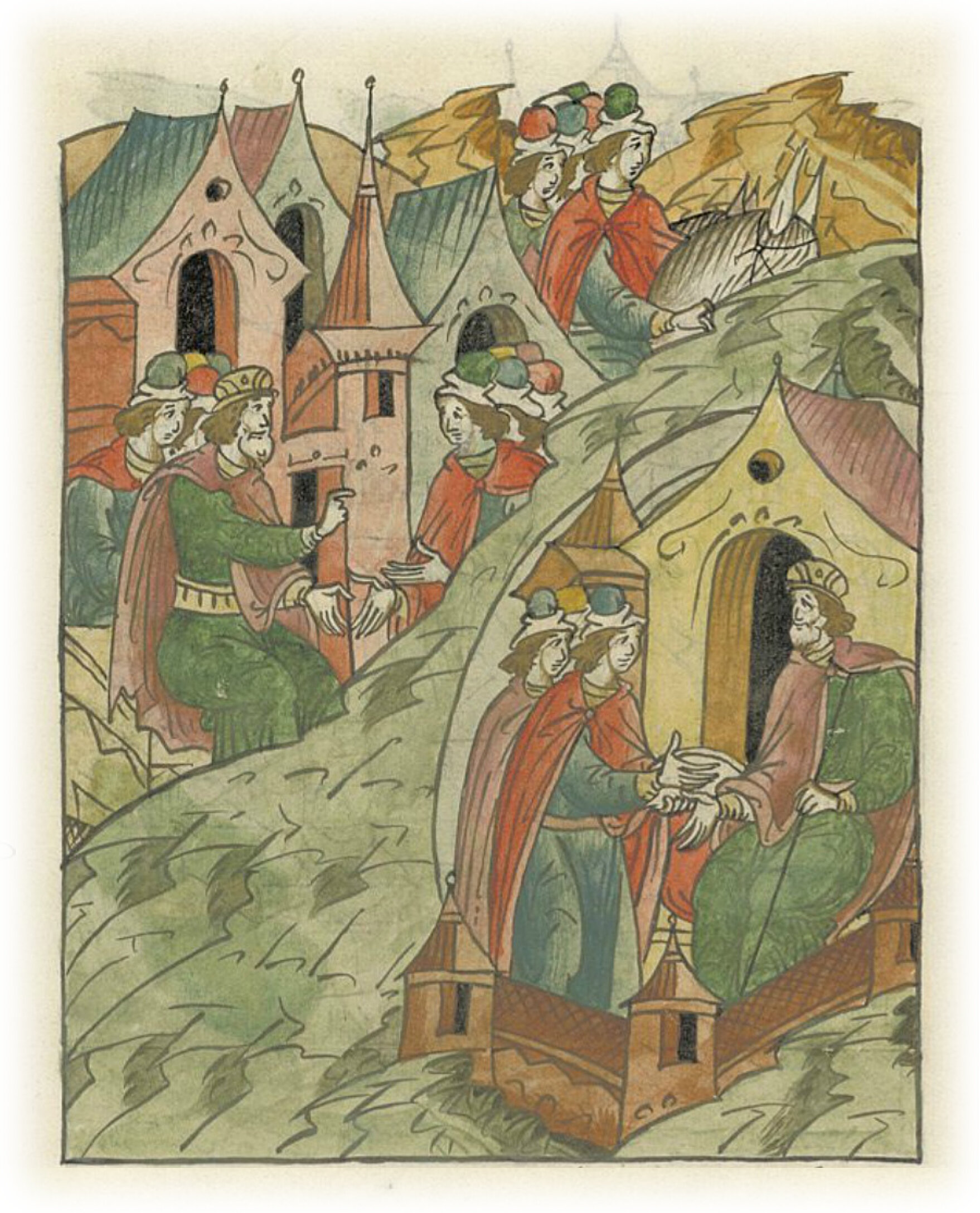 Ругодивские посадники Яким и Захар приезжают в Москву. Воеводы царя Ивана Васильевича Алексей Адашев и Иван Михайлов сообщают им, что государь пожалует их, если сдадут его воеводам помимо Ругодива Вышгород.