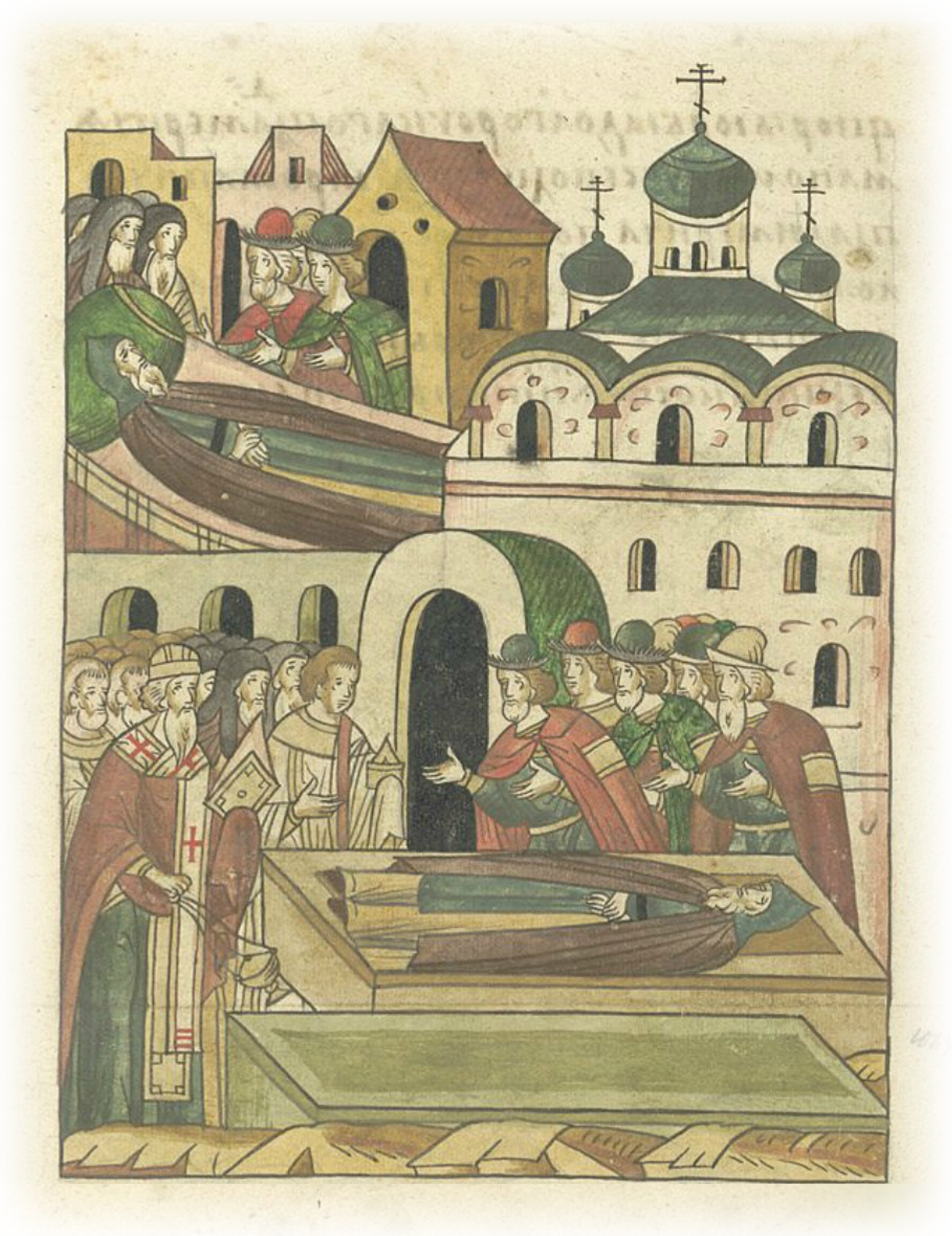 Кончина князя Андрея Константиновича Суздальского, Нижегородского и Городецкого и его похороны в церкви святого Спаса в Нижнем Новгороде.