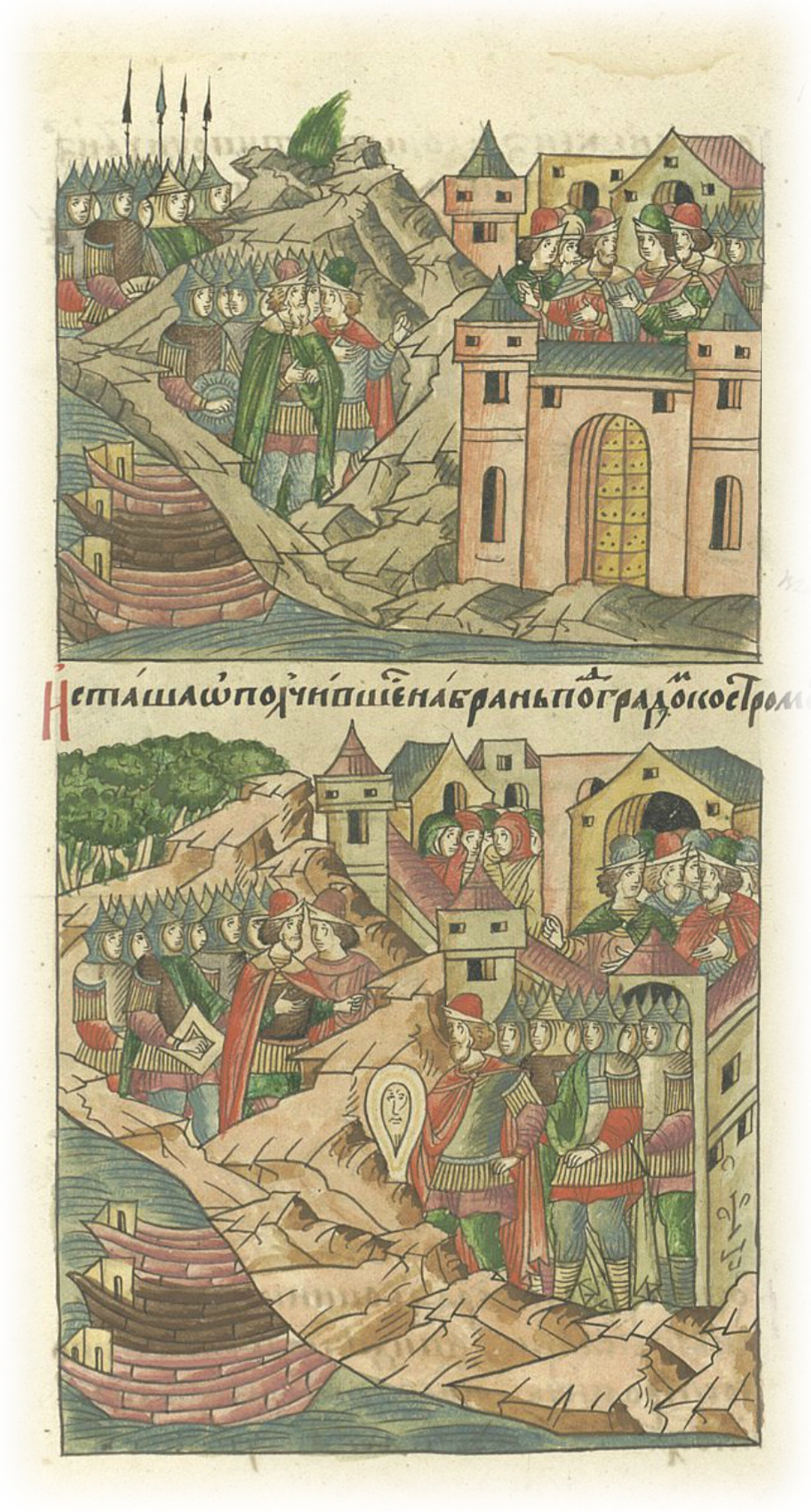 Ругодивские посадники Яким и Захар приезжают в Москву. Воеводы царя Ивана Васильевича Алексей Адашев и Иван Михайлов сообщают им, что государь пожалует их, если сдадут его воеводам помимо Ругодива Вышгород.