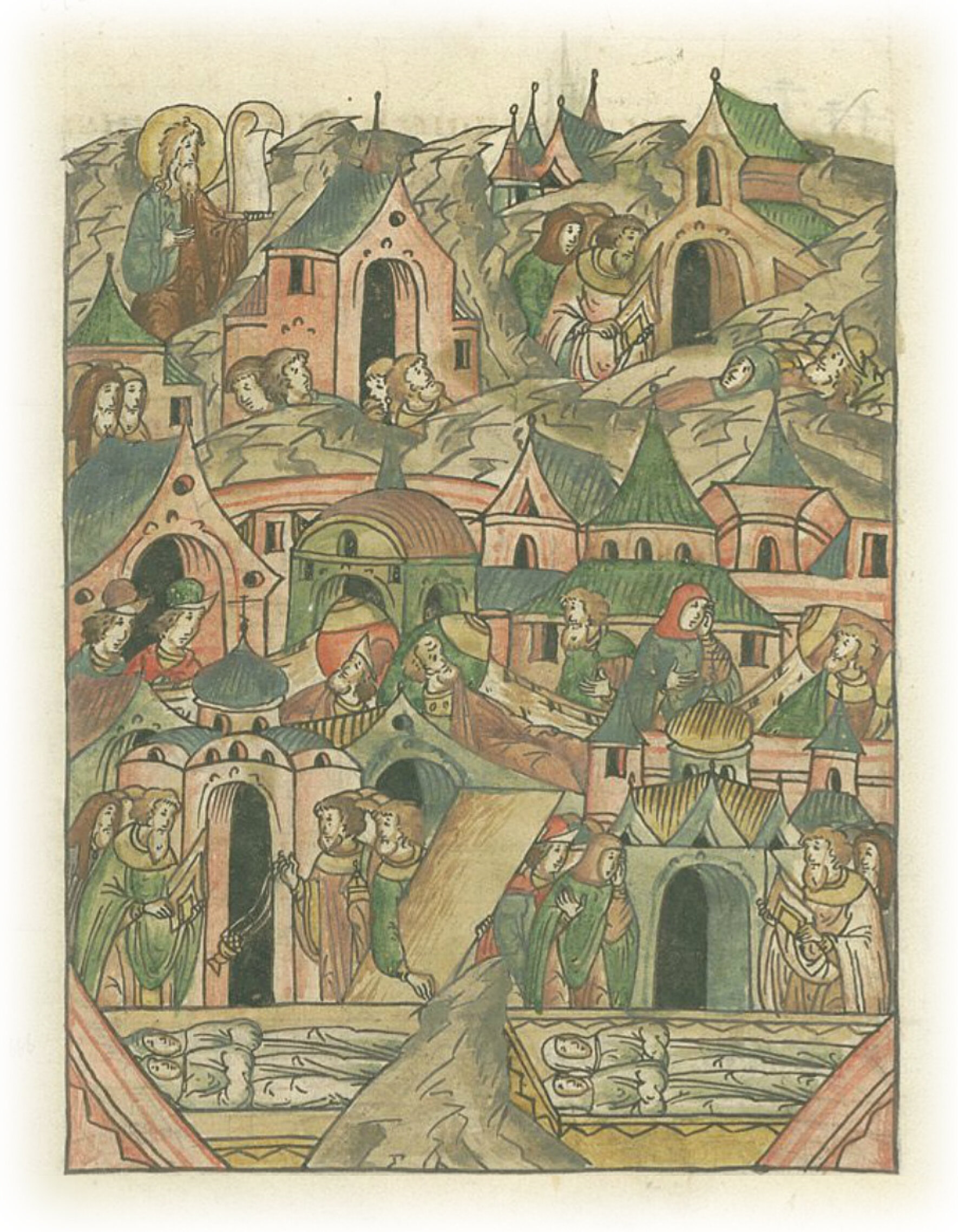 В том же году был мор великий в Новгороде и во всех пределах его. Как сказал пророк: «Если не покорятся люди, не послушают стража, учителя, – кровь будет на головах их, а сторож избавил душу свою от муки». Также и с этими людьми: проповедовал им Бог устами служителя Своего, а их пастыря и учителя, но они ожесточились и за непокорство свое приняли наказание.