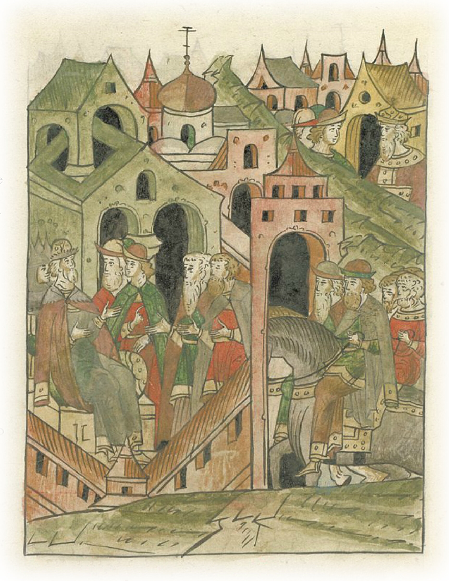 Послы из Литвы от великого князя Александра Андрей Олехнович и Войтко Янович Клочко приходят к великому князю Ивану Васильевичу.